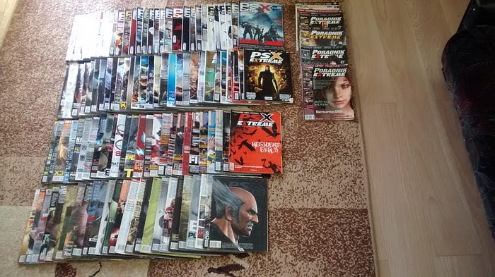 Humor, recenzje, komiksy (Cysio mistrz!), publicystyka — wszystko to kształtowało mój gust, motywowało do poszerzania wiedzy i bardziej analitycznego spojrzenia na gry. Teksty Ściery, Dżuja, Lokiego, Myszaqa (jak ja jestem wdzięczny losowi, że wrócił do dzielenia się swoimi schizami), HIVa, Kaliego, Kosa, Rogera i całej reszty tej bandy zawsze i uczyły, i bawiły. Do teraz posiadam praktycznie całą kolekcję wydawniczą PSXa. Co prawda większość z czasopism posiadam w domu rodzinnym, ale kilka lat temu robiąc porządki nawet udało mi się uwiecznić część mojej kolekcji:
