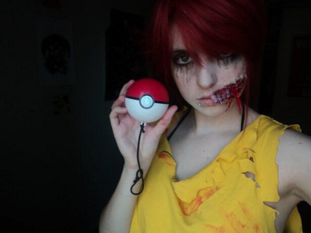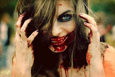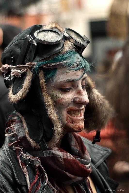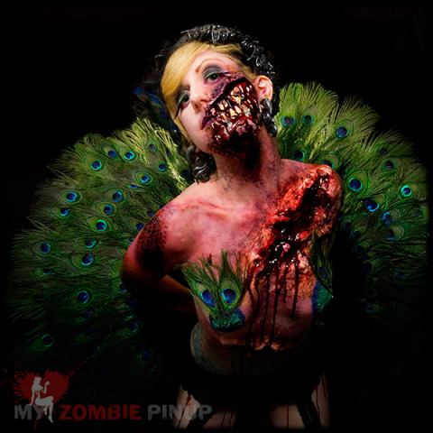 Tutaj jednak ta pani musiała się napracować nad strojem i resztą.Brawo, bo pawia zombi jeszcze nigdzie nie widziałem.