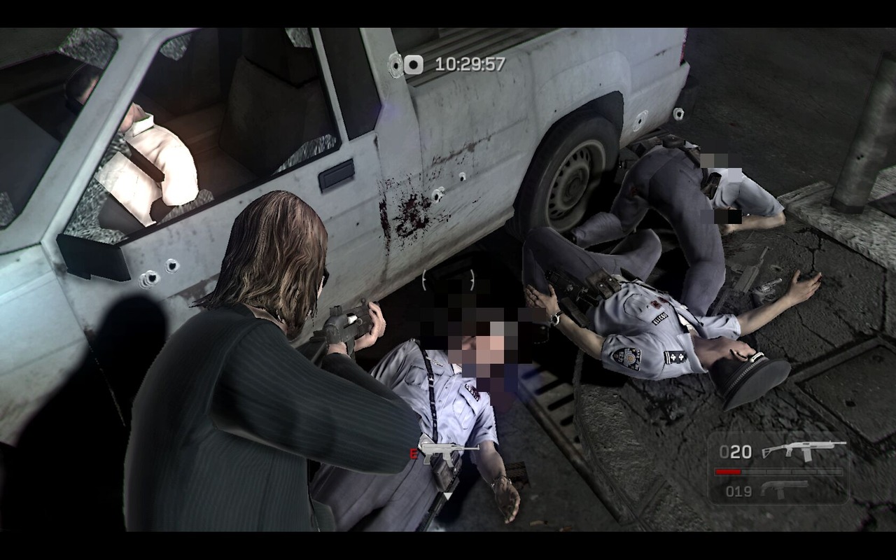 Więc co jest takiego w tym tytule że wywarł na mnie tak pozytywne wrażenie? Największym atutem tej produkcji jest grafika a w szczególności sposób prezentowania otaczającego bohaterów świata. Dog Days pod każdym względem prezentuje się lepiej od oryginału. Obraz pokazany jest jakby był to film dokumentalny kręcony z „ręki” na taniej kamerze analogowej. Brzmi mało zachęcająco? Wygląda super. Gdy biegniemy obraz podskakuje, pojawiają się refleksy świetlne, specyficzne błędy charakterystyczne dla obrazu nagranego na kasetę analogową. Gdy strzelimy komuś w głowę obraz się rozpiskselowuje podobnie jak to ma miejsce w policyjnych programach telewizyjnych . To samo tyczy się nagości . Dzięki tym wszystkim zabiegom gra zyskała na dynamice ale także nabrała wyrazistego charakteru czego brakowało pierwowzorowi. Bez fitrów grafika wypadła by przeciętnie a nawet brzydko. Lokacje są małe i zamknięte, chowamy się za przeszkodą wybijamy wszystkich i dalej do przodu. Tak naprawdę nie ma czasu na przyglądanie się miejscówką. Na mnie takie ukazanie świata zrobiło piorunujące wrażenie. Nadało realizmu rozgrywce i nie pozwalało się nudzić. Po tych 4 godzinach czułem się w pełni usatysfakcjonowany. Potem zabrałem się za multi i tam wsiąkłem na kilkanaście godzin.