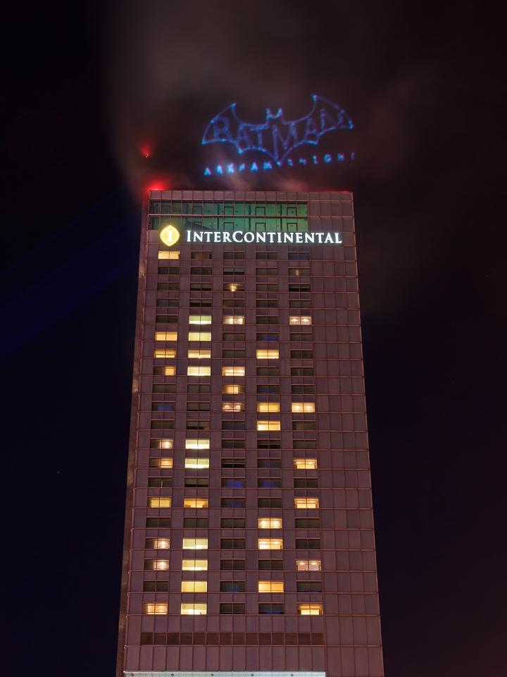 …to Mroczny Rycerz. Parę dni temu miała miejsce premiera najnowszej części serii o Batmanie, co również musiało rozbrzmieć głośnym echem.We wtorek wieczorem Warszawiacy mogli być świadkami sygnału wzywającego superbohatera do pomocy. Całość także odbyła się pod patronatem Sony i, moim zdaniem, zrobiła wrażenie! Czegoś takiego jeszcze chyba nie było, więc fajnie, że produkcję zareklamowano w tak oryginalny i adekwatny sposób.