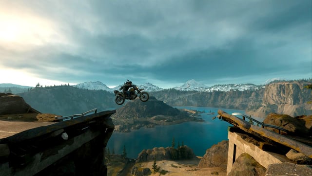KLIMAT, klimat, klimat i jeszcze tak z sześć razy klimat. Tego nie można grze odmówić, zabrać, czy ukraść. Oregon jest piękny z jego naturą jeziorami, lasami, miejscami, górami, zabudowaniami. Nawet pomimo faktu, iż wydarzyło się coś niekoniecznie dobrego, a cały region to surowe POST-APO. Może nie widać zniszczeń jakby to miało miejsce w wielkich miastach czy miejscach - patrz THE DIVISION, MAD MAX, bo jest na co popatrzeć, niestety życia tu już nie ma (jakie znamy) i trzeba walczyć o przetrwanie z wszystkimi innymi, nawet w tak wyjątkowym, klimatycznym miejscu. Poczucie bezpieczeństwa w obozie, niebezpieczeństwa poza nim. Zmiany pogody, pory dnia, dźwięki, ryki motorowych silników. To mnie przyciągało za każdym razem i było jednym z powodów, że nie odpuściłem.