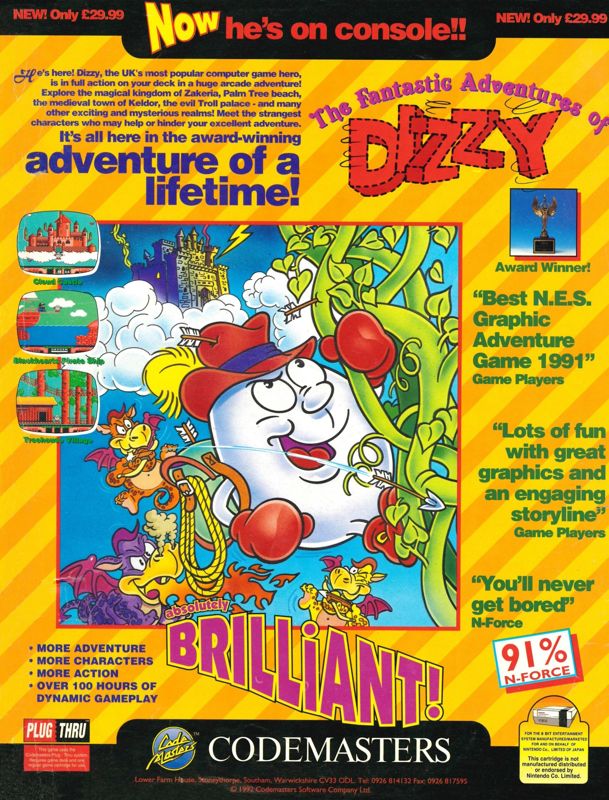 I tak gra przygotowana była na premierę w 1990 roku, dokładnie bliżej końca ze względu na okres świąteczny - założono wtedy sprzedaż pół miliona egzemplarzy. Niestety sprawę pokrzyżowało Game Genie (Codemasters było deweloperem tego dodatku) i sprawa z Nintendo, które zarzuciło naruszenie praw autorskich**. Mimo wcześniejszego zagrania ze strony amerykańskiego dystrybutora GG, LGT (Lewis Galoop Toys), sprzedaż dodatku została wstrzymana - na uboczu tego wstrzymana została także premiera tej części przygód Dizzy'ego. Gra została wydana oficjalnie w połowie 1991 roku w USA oraz w 1992 roku na NES nie spotkała się z szerokim zainteresowaniem, ponieważ zamiast spodziewanych 500 tysięcy kopii wśród graczy rozeszło się około 125 tysięcy. Pewną osłodą był tytuł NES Adventure Game of the Year 1991 od Game Player Magazine wraz z Parents Choice Award. Poza NES gra ukazała się oficjalnie także na Atari ST, Amiga, Megadrive/Genesis, PC DOS, (GameBoy), Master System, Gamegear. Był to też początek końca większego udziału braci w projekcie, ponieważ większość kodowania spadło na ręce Big Red Software.