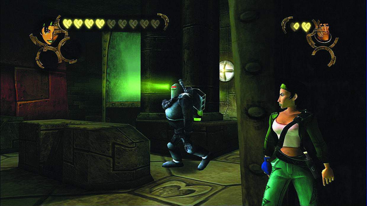 Rozgrywkę w „Beyond Good & Evil” ciężko jest przyrównać do konkretnego tytułu. Co prawda pełno jest tutaj zapożyczeń z innych gatunków, aczkolwiek wszystko zostało ze sobą tak sprawnie połączone i wzbogacone innowacyjnymi rozwiązaniami, że nie sposób zarzucić tutaj jakiekolwiek kopiowanie cudzych schematów. U podstaw rozgrywki znajduje się wykonywanie zadań postawionych nam w trakcie wykonywanej misji. Po dotarciu na miejsce zaznaczone na mapie musimy najczęściej znaleźć sposób na kontynuowanie naszej wędrówki. Mam tutaj na myśli bardzo rozbudowane i pomysłowe zagadki logiczne, które stanowią esencję i jeden z czołowych atutów omawianej pozycji. Często prowadzą do odszukania właściwego przedmiotu np. bezpiecznika lub odkrycia innego sposobu na otworzenie zamkniętych drzwi. W swoich poczynaniach nie jesteśmy osamotnieni i w podróży towarzyszyć nam będzie jeszcze jedna osoba związana z IRIS. Oprócz aktywnego udziału w walce, wspomoże nas również podczas zagadek i innych aktywności. O postać kontrolowaną przez AI nie musimy się w zasadzie martwić, gdyż bardzo dobrze radzi sobie w czasie starć z wrogami.