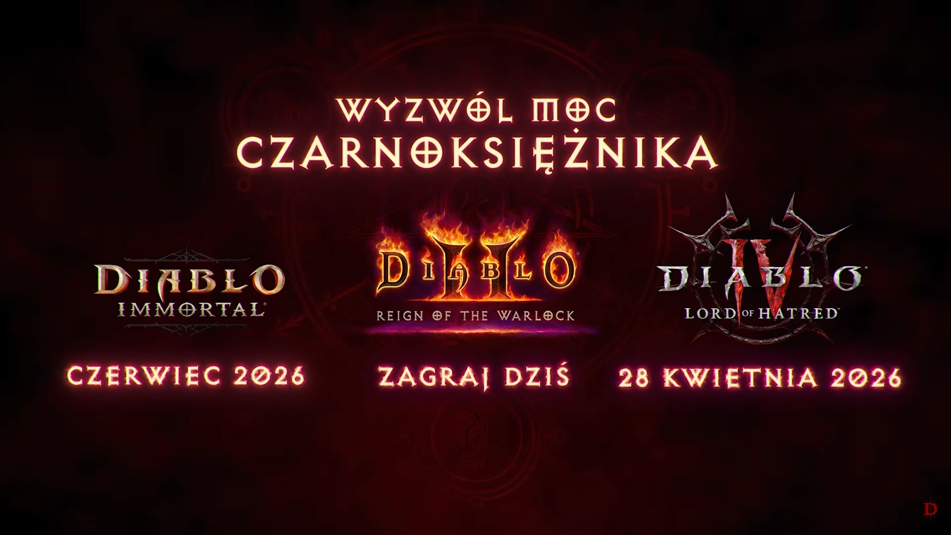 Czarnoksiężnik jest drugą klasą postaci, która trafi do gry Diablo IV w dniu 28 kwietnia 2026 roku wraz z premierą dodatku Lord of Hatred.