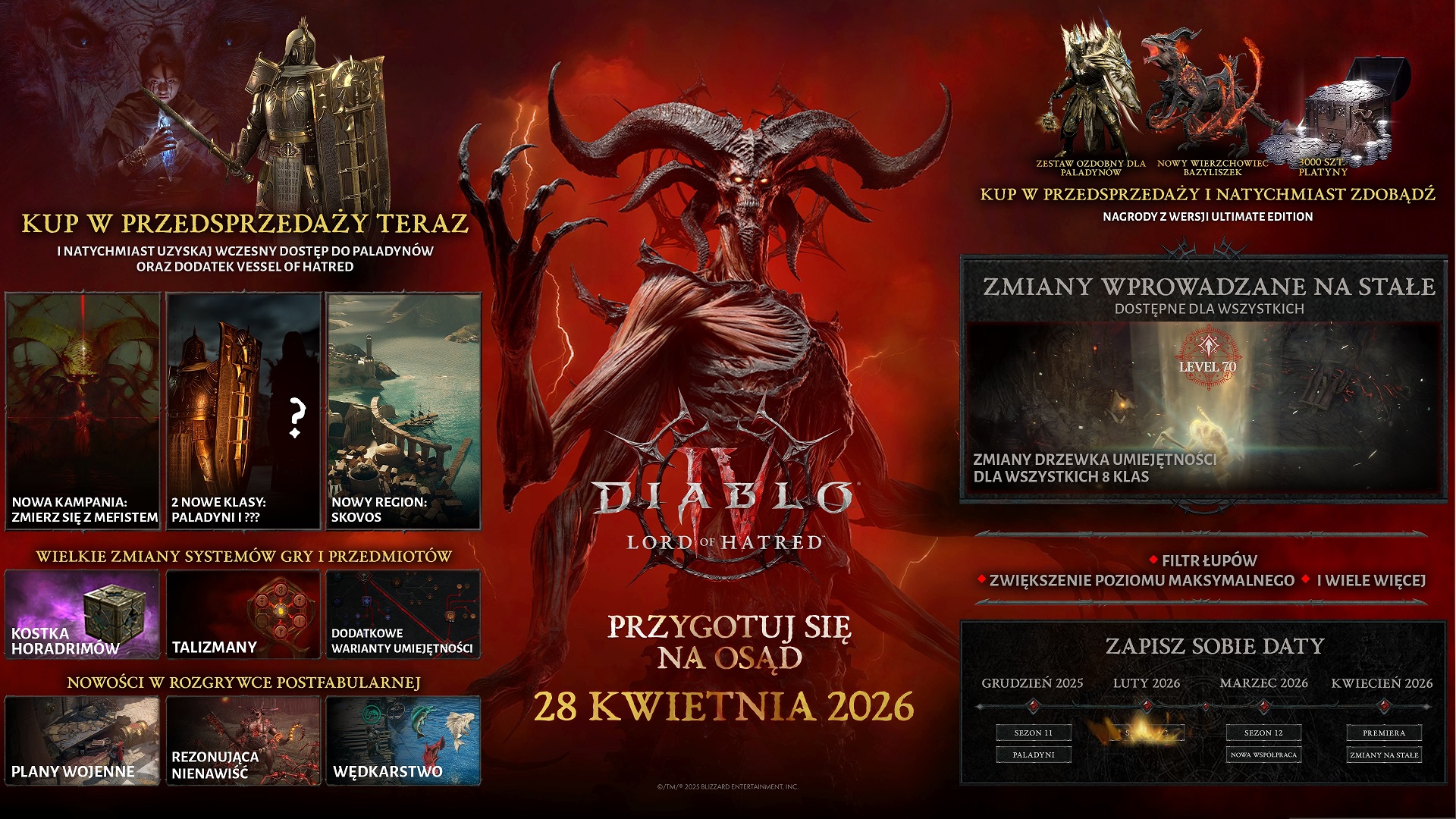 W dniu 23 kwietnia 2026 roku odbędzie się o godzinie 20:00 specjalny pokaz na którym zostanie omówiony nadchodzący dodatek oraz zmiany w grze Diablo IV.