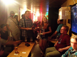 Mieliśmy na wyposażeniu mikrofon. Był to swoisty debiut tego urządzenia na naszym spotkaniu dlatego posłużył nam w głównej mierze do przedstawienia się. Zanim to nastąpiło, publicznie podziękowałem wszystkim 17 mediom, które poinformowały o naszym spotkaniu społeczności Graczy (PaDtv, Gram.pl, PS4 Polska FB, Pad Portal, Consoles Cups, Gamezilla, Gry Portal 24h, Gamersociety, GamePlus.pl, HCGamer.pl, Gazeta komputerowa.pl, Vipmultimedia.pl, Polskie gry komputerowe FB, Krajowa Konferencja Wytwarzania Gier Komputerowych FB, Dawid Maron z PaDtv – Polygamia, Level Up, Graczem od dziecka ( ;) ) - dzięki Wam wszystkim jeszcze raz!). Następnie przyszła pora na przechadzanie się z mikrofonem do wszystkich gości. Uczestnicy Pog(R)adajmy przedstawiali się następująco: imię, nazwisko bądź ksywa, jeżeli ktoś pracował w branży gier to mógł się tym pochwalić (jeżeli nie, to oczywiście mógł się również pochwalić inną pracą, a jeżeli chciałby pracować w branży gier to mógł przedstawić swoje wymarzone stanowisko pracy), wymienić ulubione serie gier oraz podać na jakiej platformie gra najczęściej. Przez okres dwóch godzin, wydaje mi się, że przepytałem wszystkie osoby (które oczywiście chciały udzielić takiego wywiadu). Forma Pog(R)adajmy jest jeszcze przedmiotem analizy, jeżeli przypadnie Wam do gustu aby jak najwięcej osób mogło wypowiedzieć się do mikrofonu to na pewno będziemy z niej korzystali i ją rozwijali.