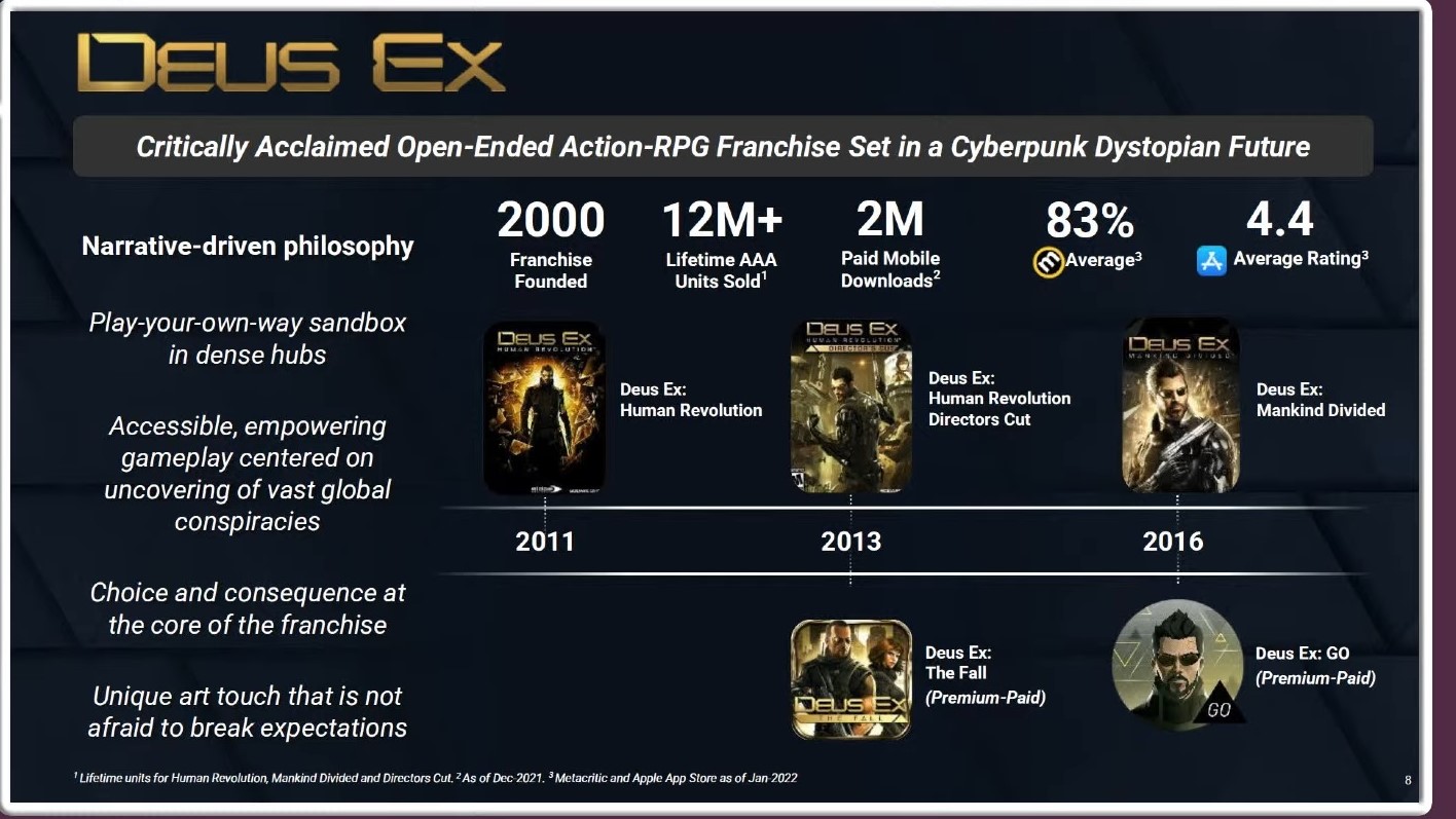 Embracer Group zaskoczyło opinię publiczną, potwierdzając przejęcie zachodnich studiów Square Enix oraz ponad 50 IP. Szwedzki holding otrzymał pod swoje skrzydła między innymi zespół Eidos Montreal oraz markę Deus Ex, której powrotu od dłuższego czasu domagają się entuzjaści historii. Ostatnia odsłona serii opracowywana przez deweloperów, czyli Deus Ex: Rozłam ludzkości, zadebiutowała w 2016 roku.