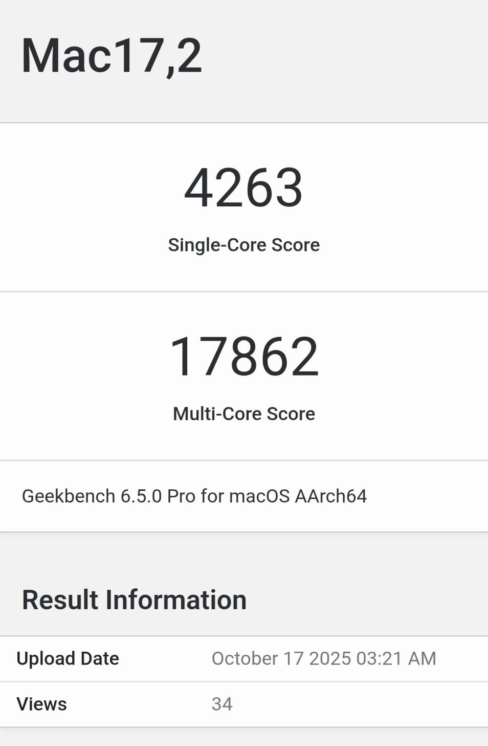 Na razie dane z Geekbencha warto traktować z pewną rezerwą – w bazie pojawiło się wiele wyników oznaczonych jako „iPad17,4”, natomiast brak jest oficjalnych rekordów dla „Mac17,2”, co może oznaczać, że nie wszystkie testy zostały jeszcze zweryfikowane. Jeśli jednak wyniki się potwierdzą, Apple po raz pierwszy rozdzieliło flagowe chipy nie tylko liczbą rdzeni, ale także ich realną częstotliwością pracy, co może zapowiadać nową strategię w projektowaniu układów z serii M.