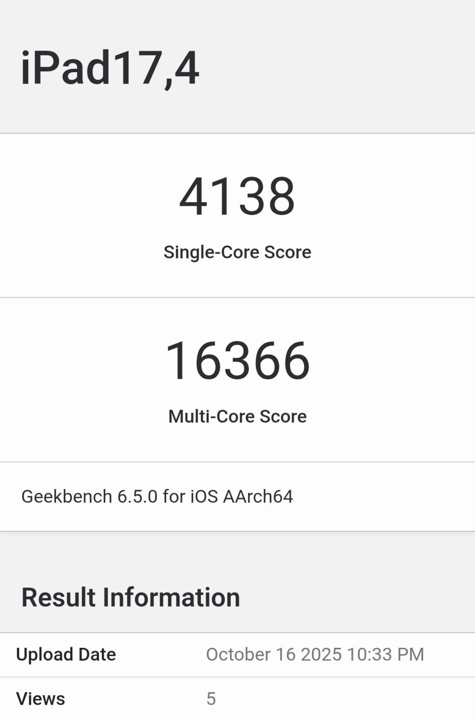 Wyniki opublikowane w bazie Geekbench 6 przez profil @TECHINFOSOCIALS na platformie X wskazują, że M5 w MacBooku Pro działa z wyższymi zegarami niż w iPadzie Pro. Rdzenie wydajnościowe w laptopie osiągają 4,61 GHz, podczas gdy w tablecie ich taktowanie wynosi 4,43 GHz. Różnica jest niewielka na papierze, ale wystarcza, by w testach syntetycznych przełożyła się na zauważalny wzrost mocy obliczeniowej w modelu z aktywnym chłodzeniem. Nie powinno to natomiast nikogo dziwić, bo takie różnice są naturalne, niemniej dla kogoś, kto rozważa wybór między laptopem, a iPadem, może to mieć znaczenie.