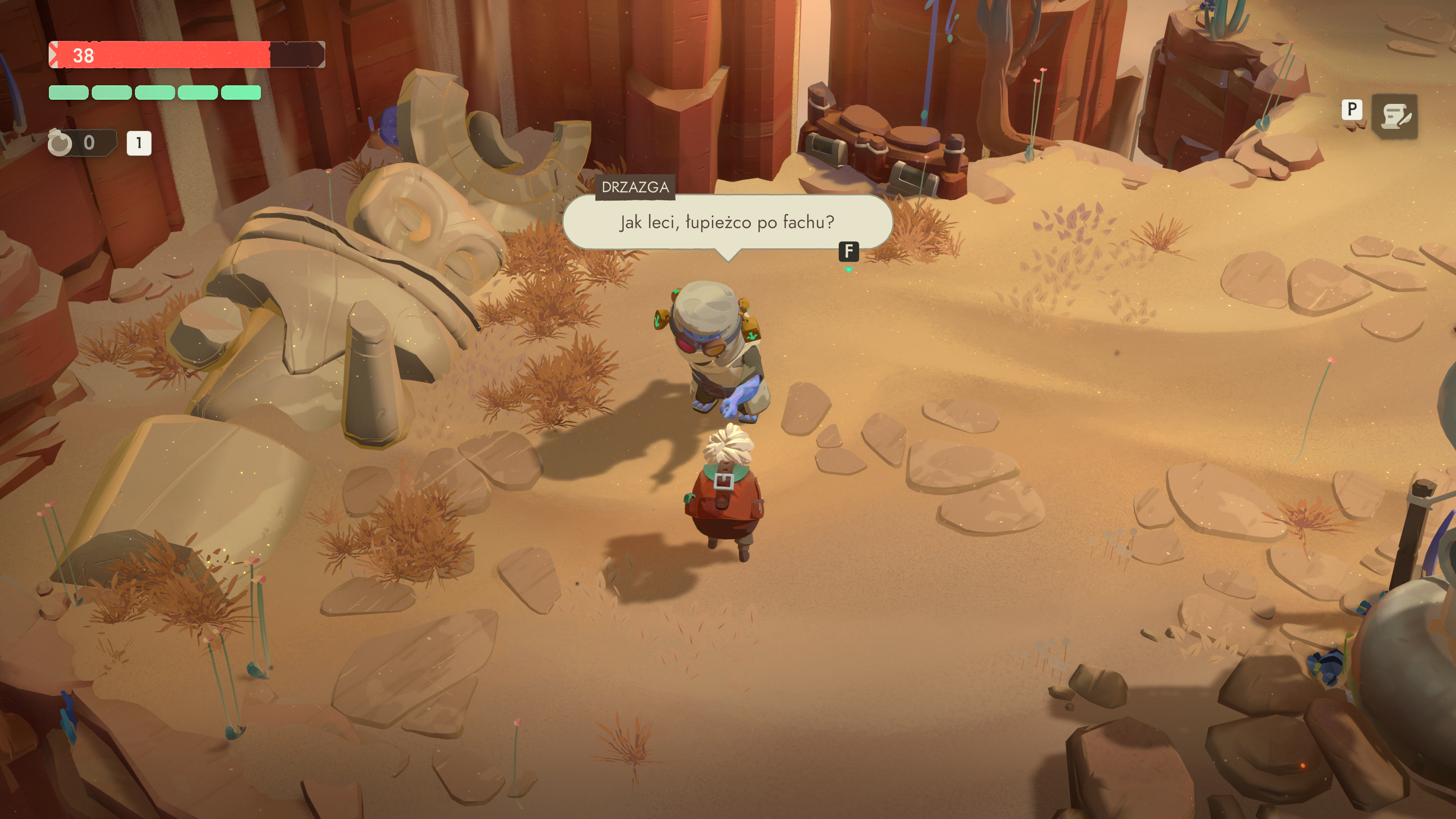 Roguelitowe serce nadal bije mocno i niezmiennie dyktuje tempo wypraw. Każdy pokój może być nagrodą albo karą, a niektóre sekwencje – zwłaszcza te z elitarnymi przeciwnikami lub mini-bossami – potrafią zmienić pewny siebie run w desperacką próbę przeżycia z siedmioma punktami zdrowia i ostatnią miksturą działającą jak estus z Dark Souls. Układ pomieszczeń zawsze wygląda inaczej, różne premie wpływają na statystyki, a przeciwnicy pojawiają się w konfiguracjach, które zmuszają do natychmiastowej adaptacji. Szczególnie ważny pozostaje plecak – mechanika, która w Moonlighterze była nie tylko ekwipunkiem, lecz integralną częścią zabawy. W dwójce dzieje się dokładnie tak samo, tylko twórcy jeszcze to rozbudowali. Przedmioty mają swoje specyficzne właściwości - potrafią spalić inne obiekty obok siebie, wzmacniać wartość reliktów, jeśli leżą w określonej pozycji, a nawet niszczyć zawartość torby, jeśli nie zachowa się odpowiedniej ostrożności. To jest osobna minigra, w której zarządzasz ryzykiem, łamiesz sobie głowę nad idealnym rozmieszczeniem łupu i faktycznie czujesz, że każdy błąd kosztuje – a każdy sprytny ruch procentuje po powrocie do miasta.