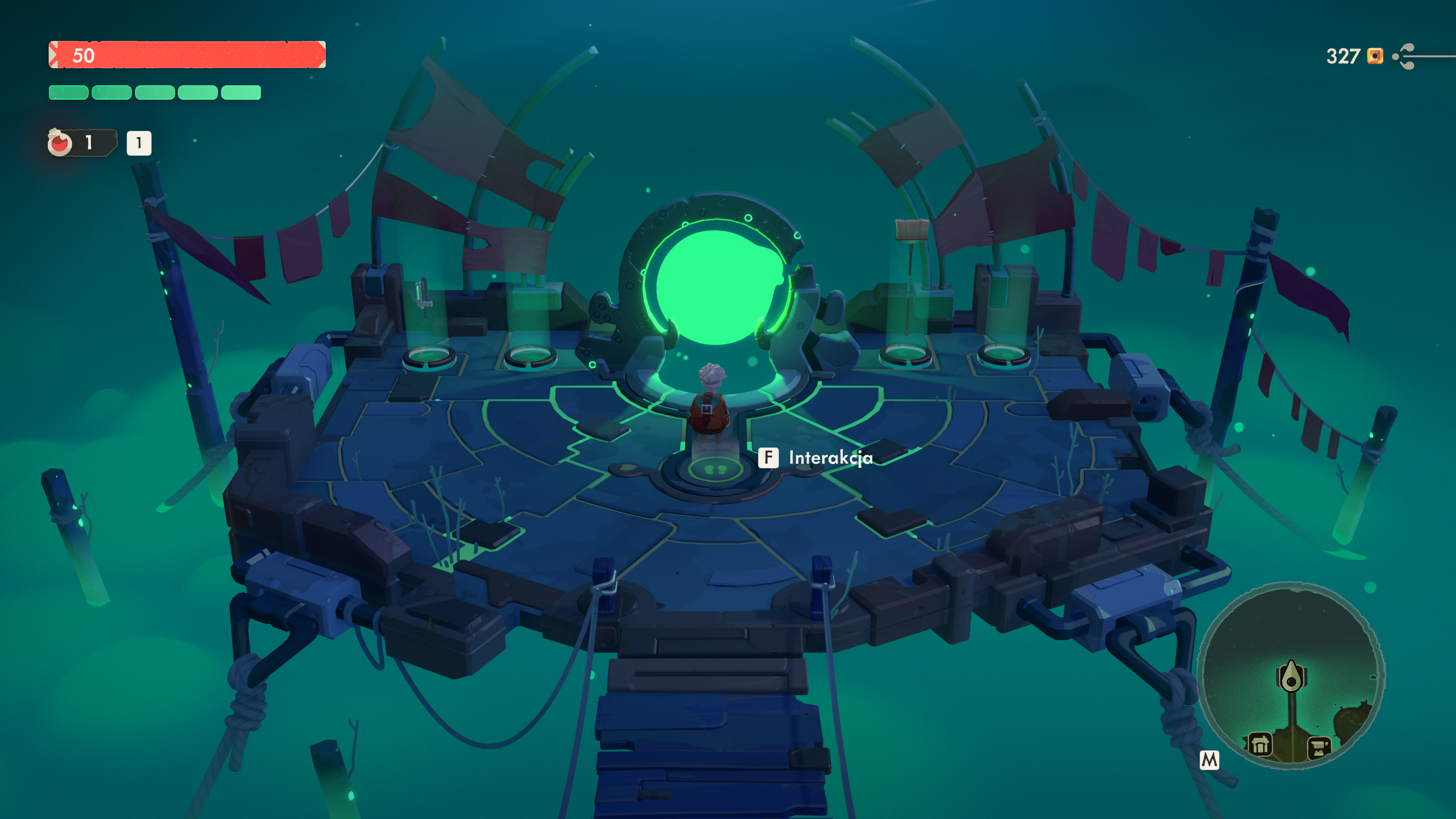 Do tego dochodzą uniki, uderzenia ciężkie, lekkie, ruch torby kupieckiej wykorzystywany jako narzędzie do odpychania wrogów oraz – w momentach kryzysowych – po prostu pistolet, który przestaje się przejmować stylistycznymi granicami świata. System bywa jeszcze odrobinę sztywny - animacje nie zawsze łączą się idealnie, a wyczucie przestrzeni potrafi zawieść w bardziej zatłoczonych miejscach, gdzie dekoracje nie zawsze rozumieją, że mają być tylko dekoracją. Mimo to pod spodem czuć bardzo świadomy kierunek: Moonlighter 2 celuje w większą dynamikę i daje postaci o wiele bardziej ekspresyjną „wagę” od pierwszej części, co bardzo doceniam. Gra się w to po prostu dużo lepiej.