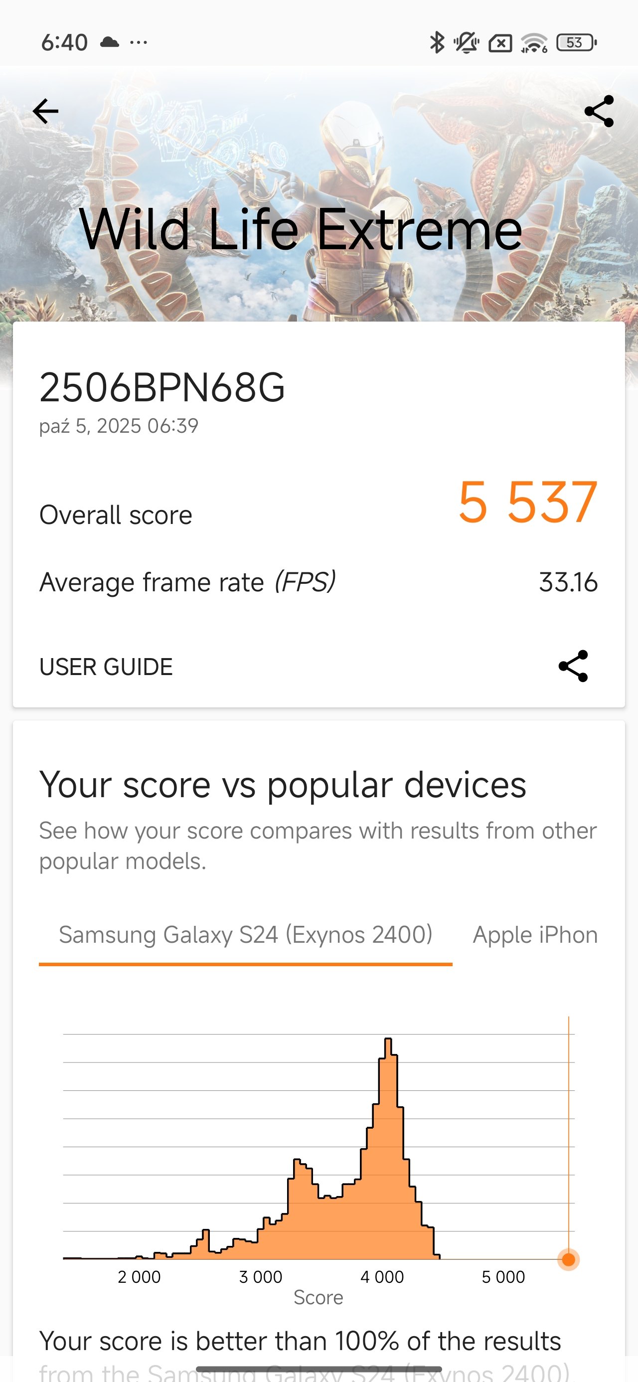 - 3DMark Wild Life Extreme: 5537 pkt (33 FPS) - to poziom flagowców z 2024 roku