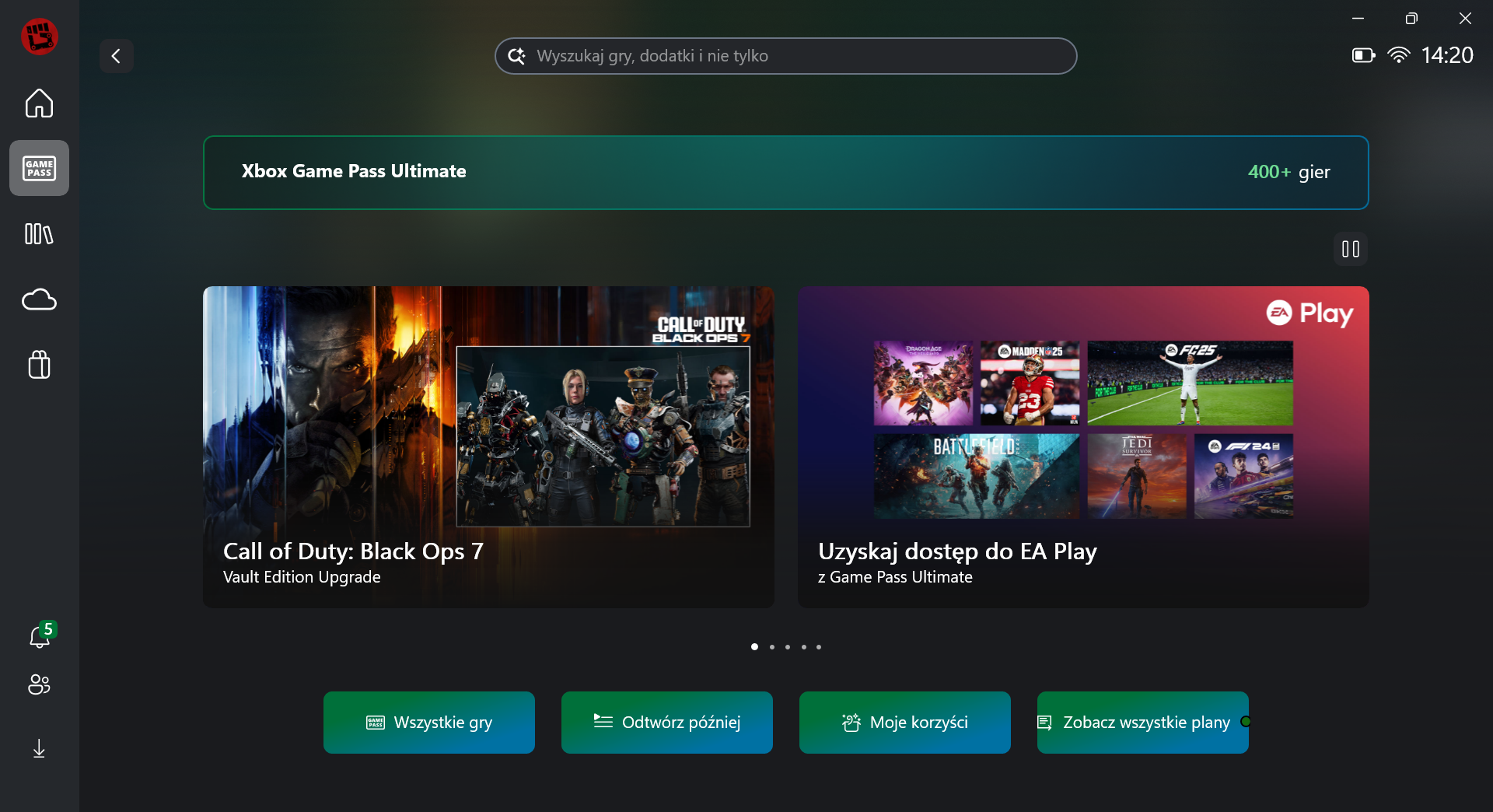 - Interfejs XFE (Xbox Full Experience) redukuje konieczność interakcji z desktopowym Windowsem, oferując wygodne sterowanie i szybkie przeskakiwanie pomiędzy odpalonymi aplikacjami czy funkcjami