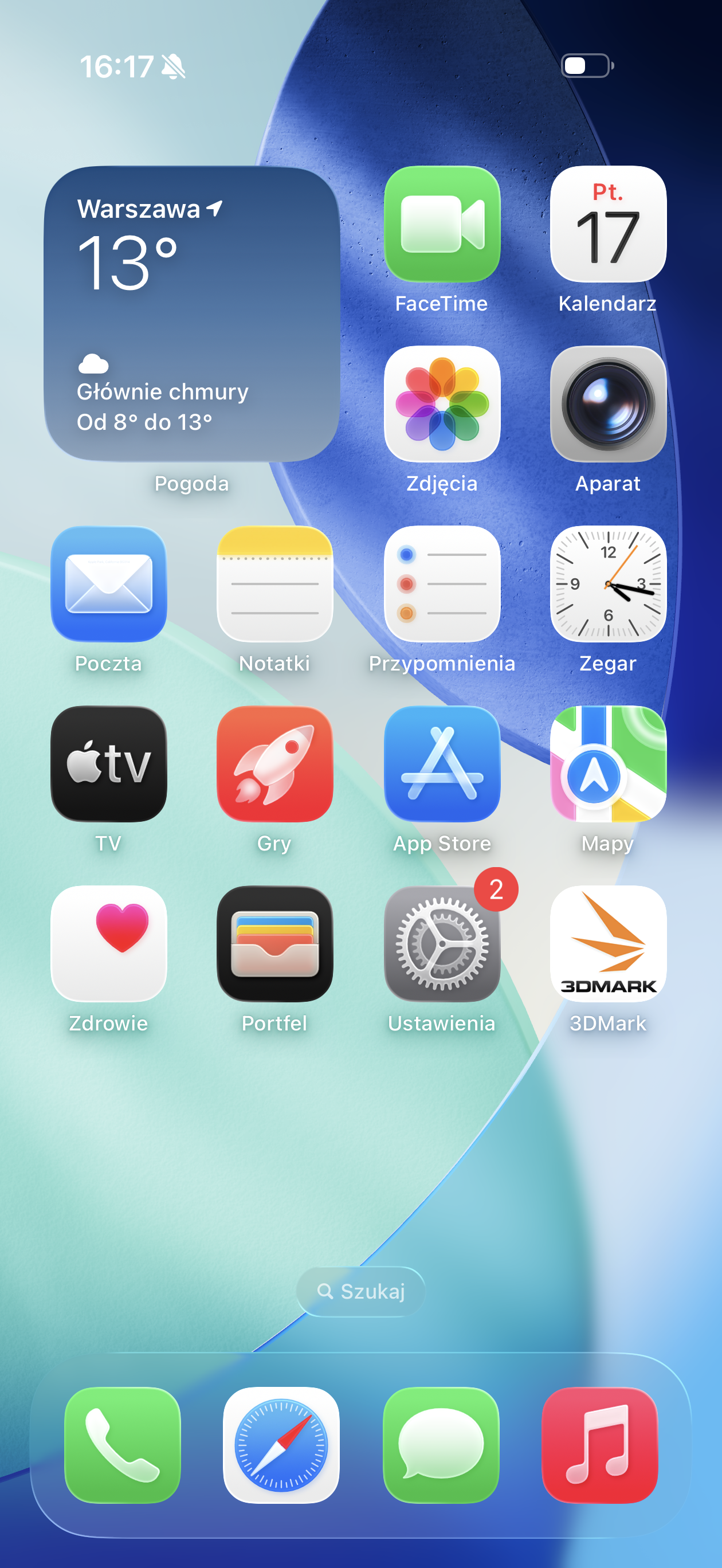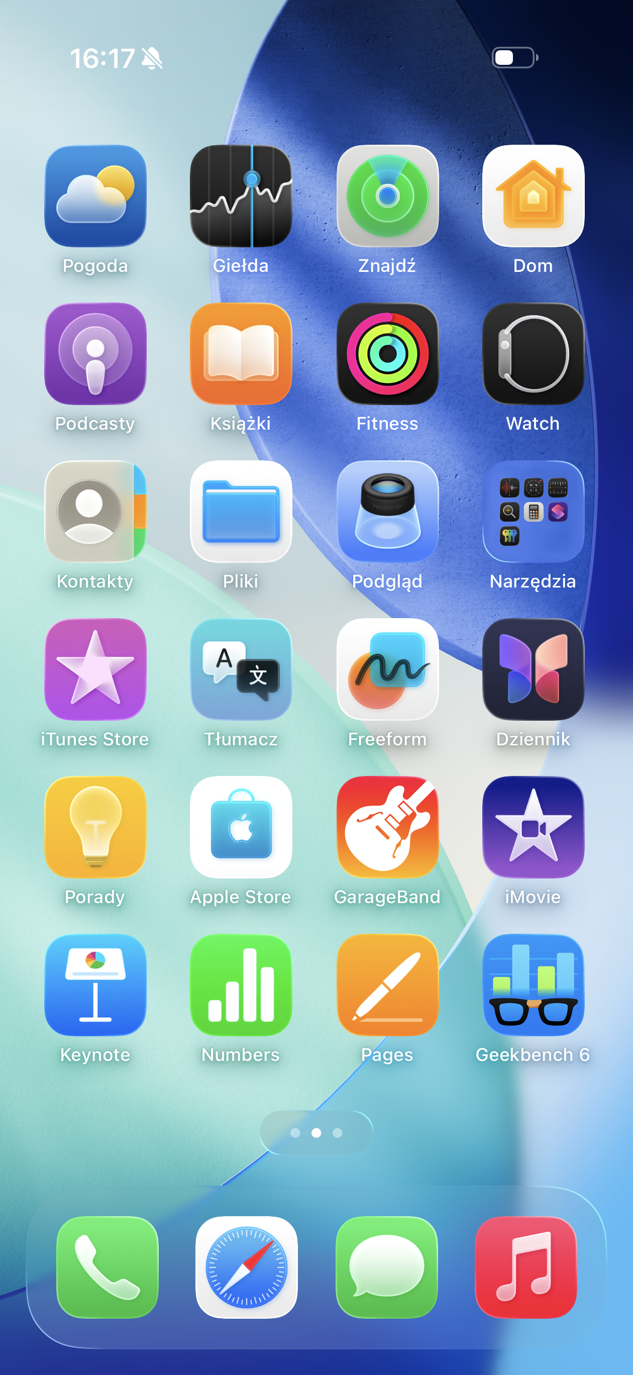 - System operacyjny: iOS 26 z interfejsem Liquid Glass