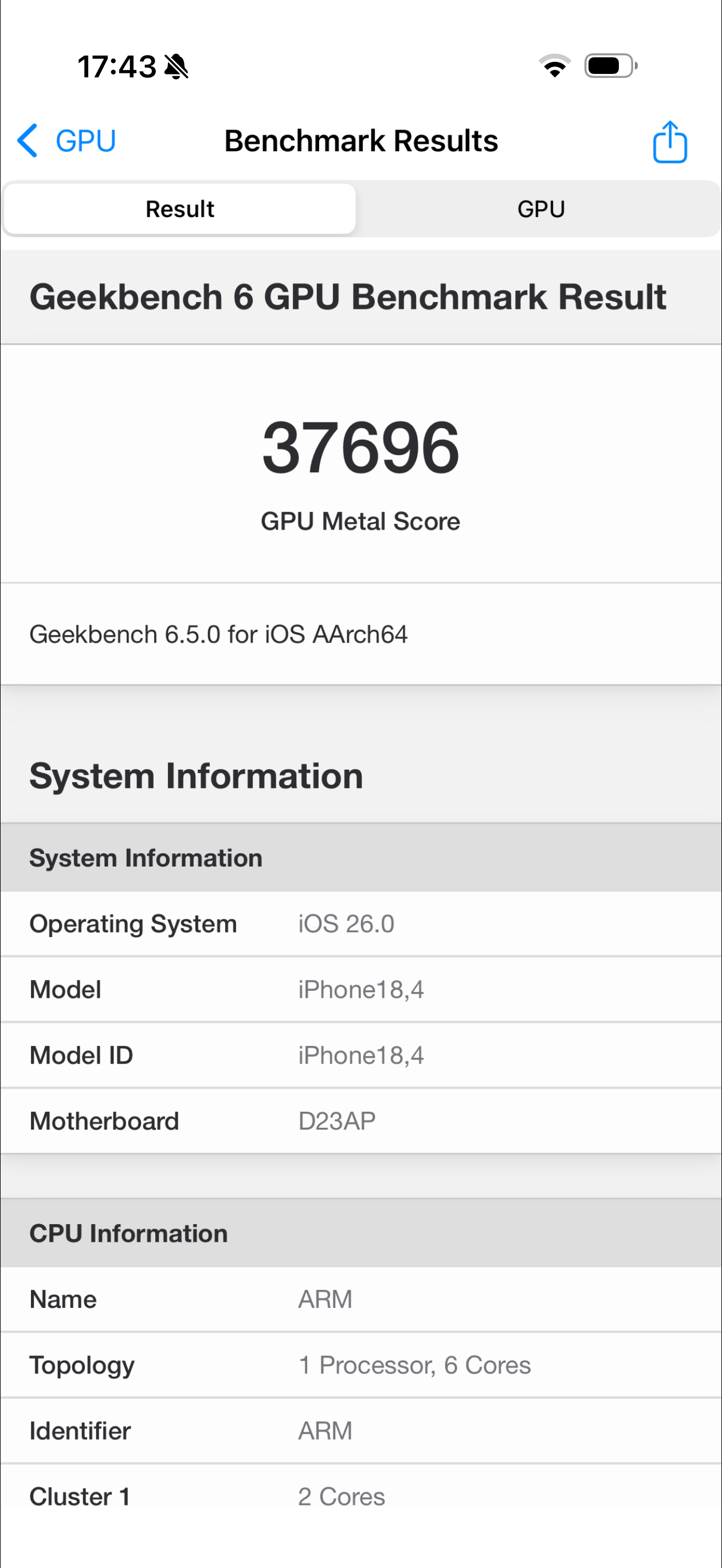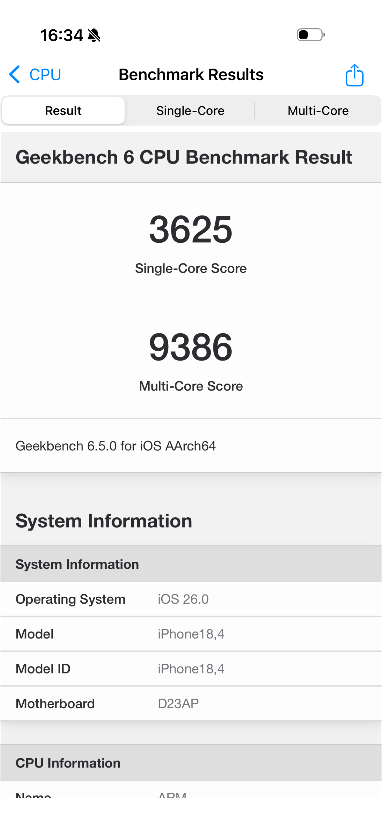 - Procesor: sześciordzeniowy Apple A19 Pro @4,16 GHz (3 nm) z 5-rdzeniowym GPU i 16-rdzeniowym Neural Engine. Układ o obniżonej liczbie rdzeni GPU względem 17 Pro/Pro Max