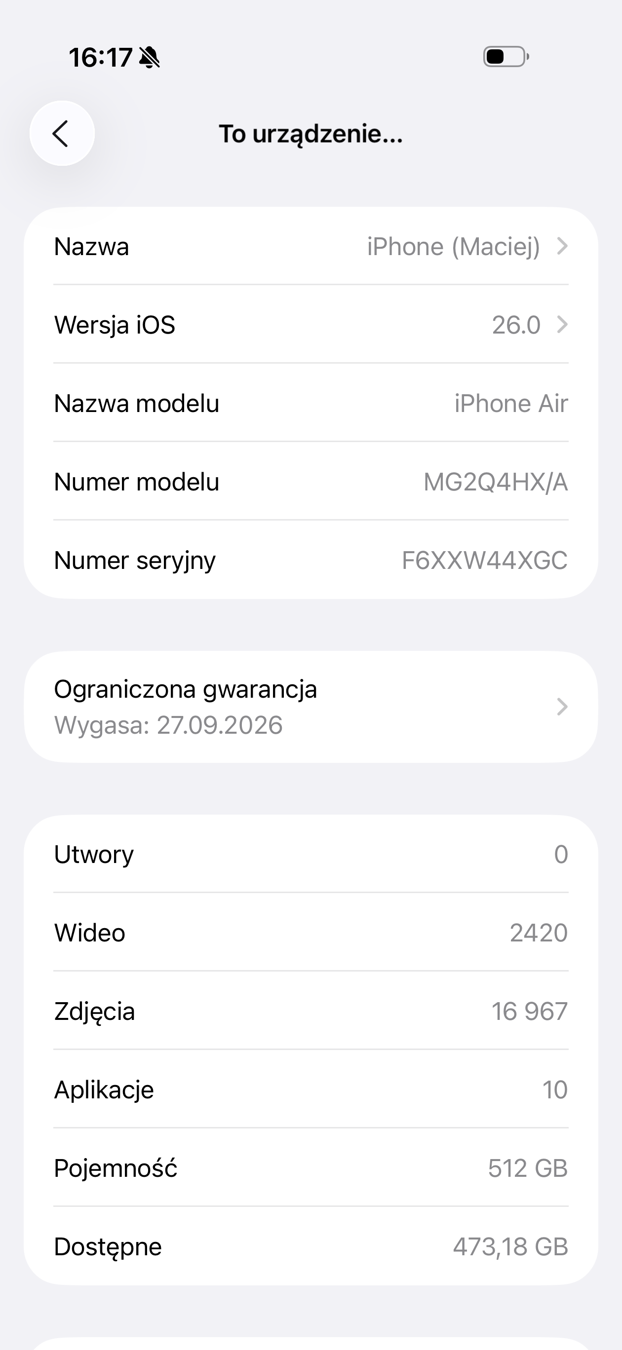 Największym zaskoczeniem jest bateria. Spodziewałem się katastrofy, a dostałem… rozsądną codzienność. Mniejszy akumulator i ultra-cienka konstrukcja sugerowały, że Air będzie sprzętem „na pół dnia”. Tymczasem przy mieszanym użytkowaniu (LTE/Wi-Fi, zdjęcia, mapy, social media, przeglądanie internetu, Spotify) telefon spokojnie dociera do końca dnia – czasem wymaga krótkiego podładowania po południu, ale nie ma mowy o panice. Jasne, to nie poziom 17 Pro Max, ale zaskakująco blisko iPhone’a 17, co samo w sobie jest imponujące. Różnice wynoszą jakieś 30-40 minut na korzyść "zwyklaka", co daje ok. 7h odtwarzania filmów offline. Nie ma tragedii. Bateria ładuje się wolniej, niż u "większych braci" - dostajemy raptem 25W ładowanie (nie 40W). Zasilacz USB-C o mocy 20W uzupełnia 40% baterii w ok. pół godziny (do pełna w nieco ponad półtorej godziny), a ładowanie MagSafe i Qi2 działa całkiem sprawnie. Apple sprzedaje dedykowany powerbank MagSafe, ale przyznaję, że to jest jakiś totalnie chybiony projekt. Dlaczego nie ma go w czarnym kolorze? Po jego założeniu zyskuje grubość zwykłego telefonu, a Apple wówczas podaje czas pracy na baterii zbliżony do tego, co oferuje iPhone 17 Pro Max. No kompletny nonsens - w dodatku tego powerbanka nie mogę użyć z którymkolwiek innym iPhonem, bo do nich nie pasuje i ich nie ładuje. No i ta cena - 500 zł? Szalone i absurdalne.