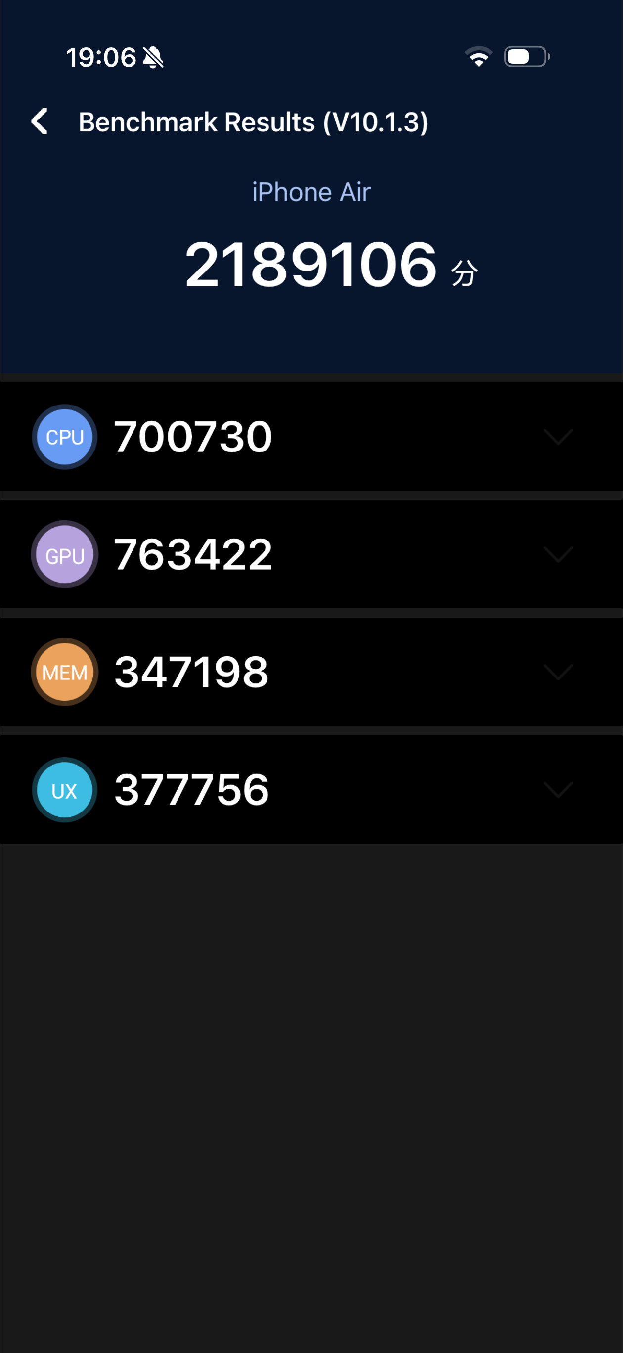 W moich testach iPhone Air potwierdził, że nawet ultracienka konstrukcja nie musi oznaczać kompromisu wydajnościowego. Pod maską drzemie układ Apple A19 Pro z 5-rdzeniowym GPU - jednostka nieco okrojona względem 6-rdzeniowego wariantu z modeli Pro, ale w praktyce różnice są zauważalne dopiero przy ekstremalnych obciążeniach. Co jednak istotne, taktowana jest niżej, bo osiąga 4,16 GHz, a nie 4,23 GHz jak w iPhone 17 czy 17 Pro. W Geekbench 6 smartfon uzyskał 3625 pkt w Single Core i 9386 pkt w Multi Core, a wynik 37696 pkt w teście Metal pokazuje, że to nadal topowa mobilna platforma obliczeniowa. To poziom zbliżony do iPhone’a 17, ale ku mojemu zaskoczeniu trochę gorszy. Wypada też sporo niżej od iPhone 17 Pro Max, ale ten dysponuje pełnym GPU i lepszym chłodzeniem. W AnTuTu V10 mój egzemplarz zdobył 2,18 mln punktów, co lokuje go powyżej Galaxy S25 Edge (ok. 1,9 mln), mimo że konstrukcyjnie to jednak trochę inne urządzenia.