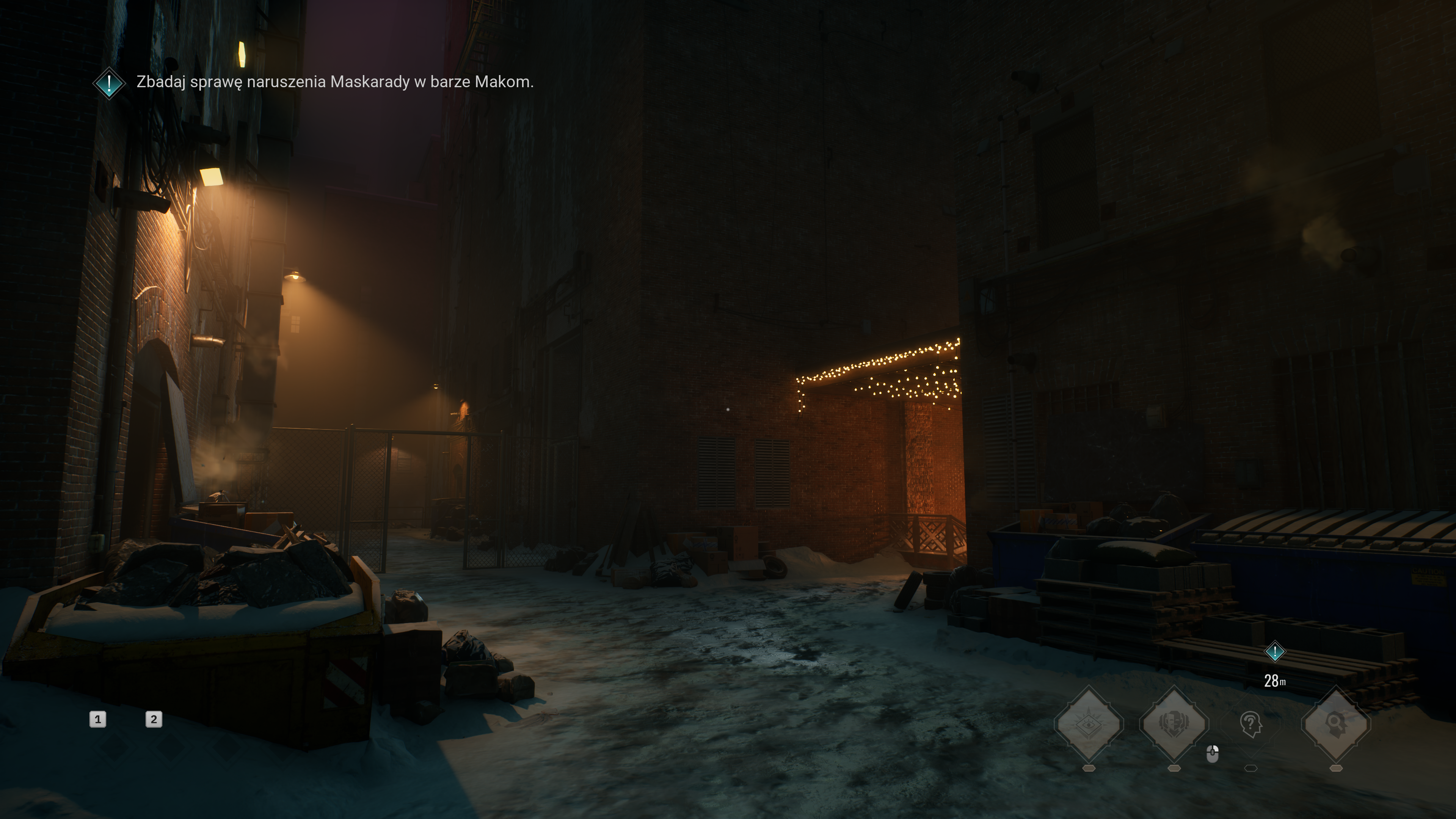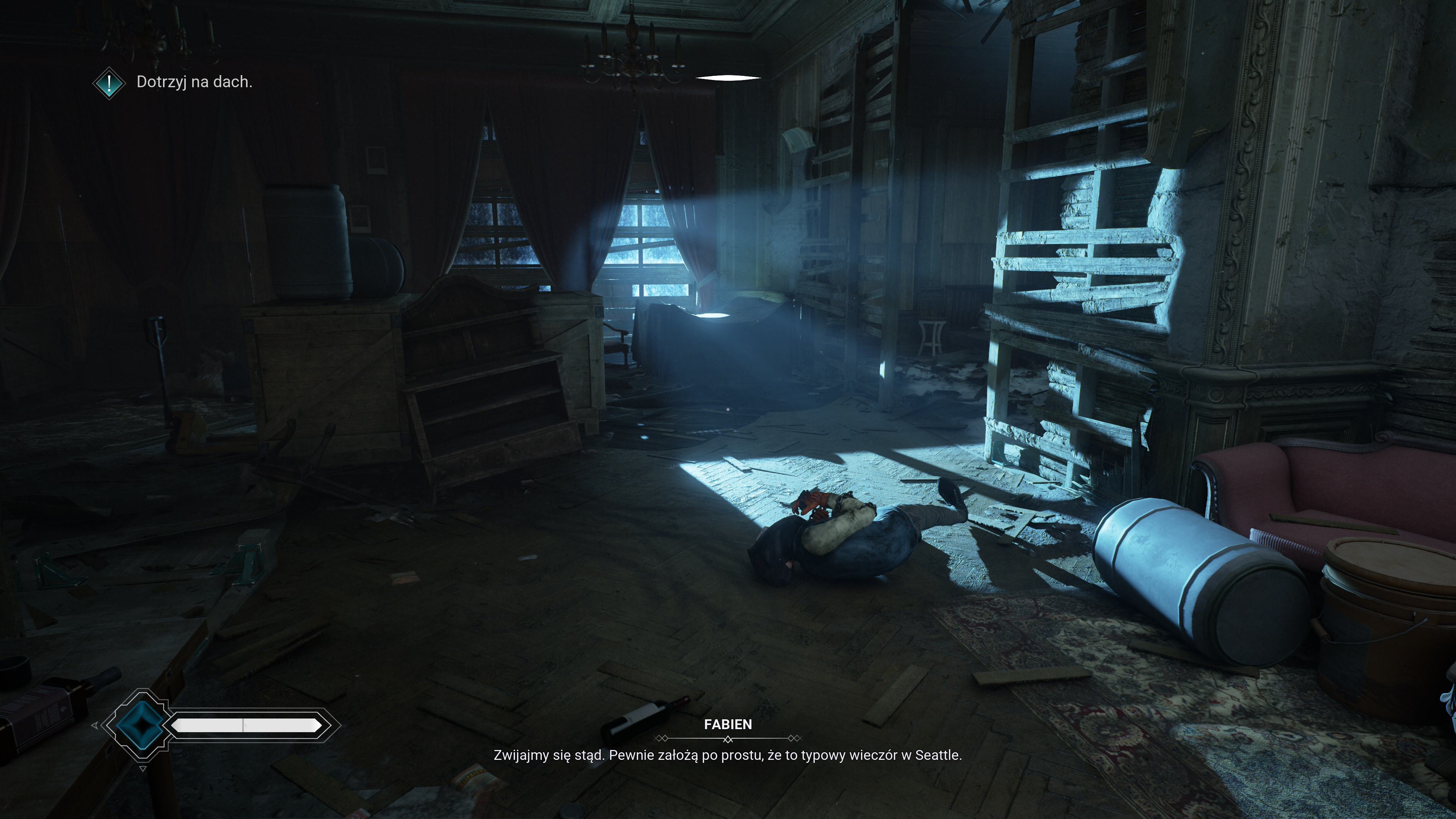 Niestety, po kilku godzinach zauważyłem, że Seattle to jeden, dość niewielki hub, większy niż pojedyncze dzielnice z jedynki, ale ubogi w interakcje i wnętrza, z powtarzalnymi „przelotami” między kilkoma stałymi punktami. Wrażenie otwartości szybko zamienia się w korytarz z iluzją wyboru. Brakuje szybkiej podróży, ulice bywają puste, a questy poboczne sprowadzają się do prostych zleceń typu "idź, zabij/weź coś i wróć". Niestety zawodzi też sztuczna inteligencja NPC, bo raz mają supermoce, widząc przez ściany, a innym razem możemy biegać dookoła nich i nie zorientują się wcale, że coś jest nie tak.