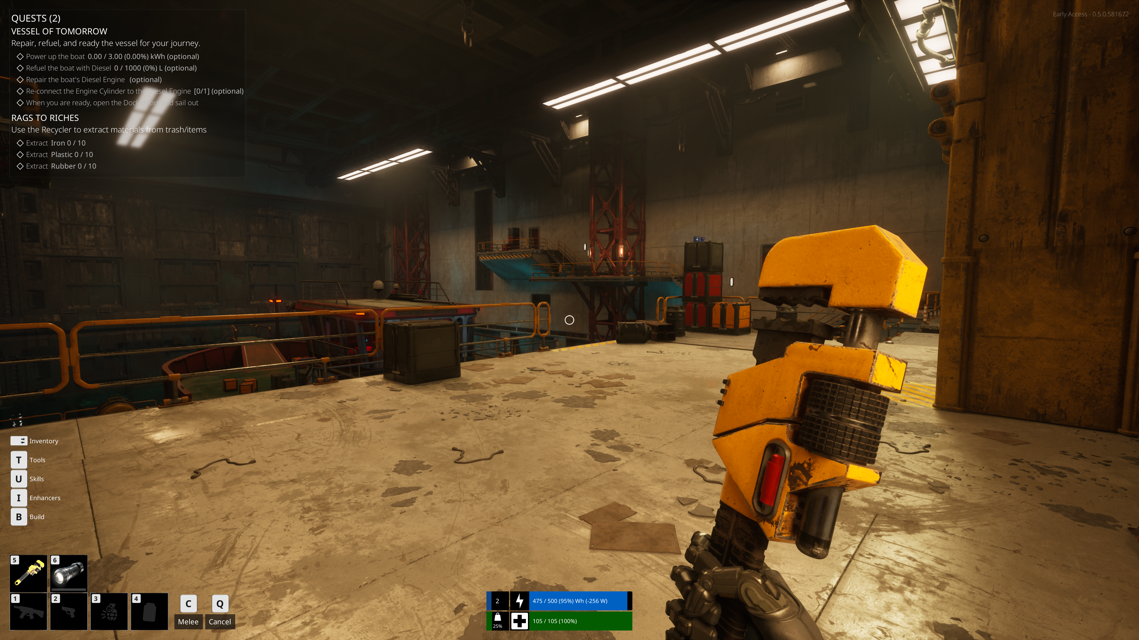 Co też ważne w kontekście rozgrywki i co mnie niestety po czasie zmęczyło, to rozbudowa naszej łodzi. To na niej wracamy do miejsc, w których znajdziemy zasoby, nowe schematy i kolejne elementy do uruchomienia. Rytm tej gry jest powolny, a schemat cały czas się powtarza - najpierw odzyskane materiały trafiają do recyklera, potem przerabiamy je na surowce, z których produkujemy podzespoły potrzebne do napraw i rozbudowy. Niestety zmagałem się z poczuciem "grindowania" - jakby nieco ta mechanika była przesadzona. Fajne jest natomiast to, że do recyklera poszczególne elementy wrzucamy "ręcznie". Trzeba pójść do metalowe pudło, podnieść i wrzucić do rozdrabniarki, co sprawia sporo satysfakcji. Po kilkudziesięciu minutach takiej zabawy, pracy baza zaczyna funkcjonować płynnie, a generatory przestają przerywać funkcjonowanie. Instalacje chodzą stabilnie, a łódź ma paliwo na następną wyprawę. Szkoda, że musimy to regularnie powtarzać, więc wpadamy w pewną rutynę.