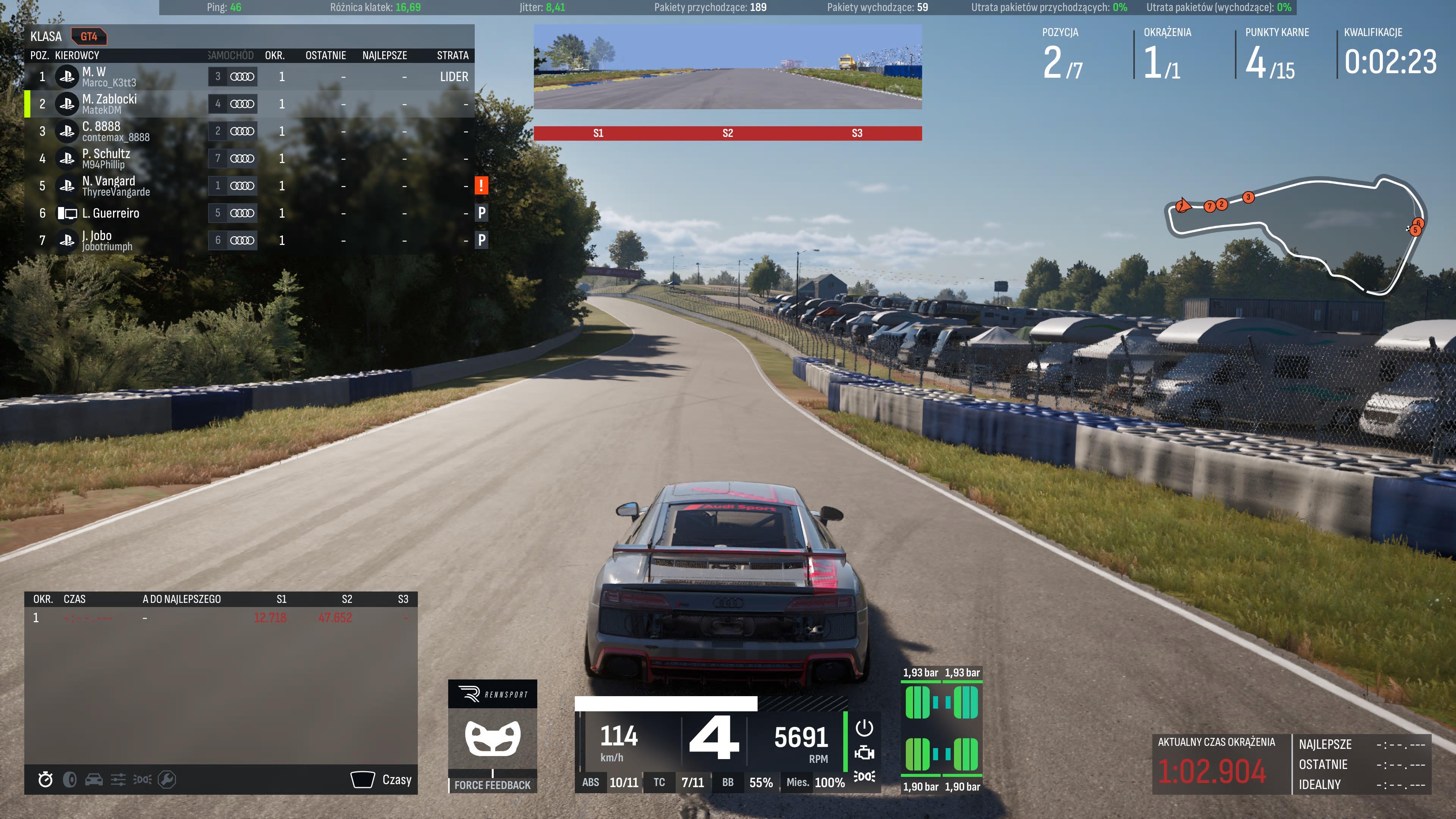- Na kierownicy da się grać komfortowo, bo force feedback jest fajny i wyczuwalny, pozwala skupić się na rytmie okrążeń