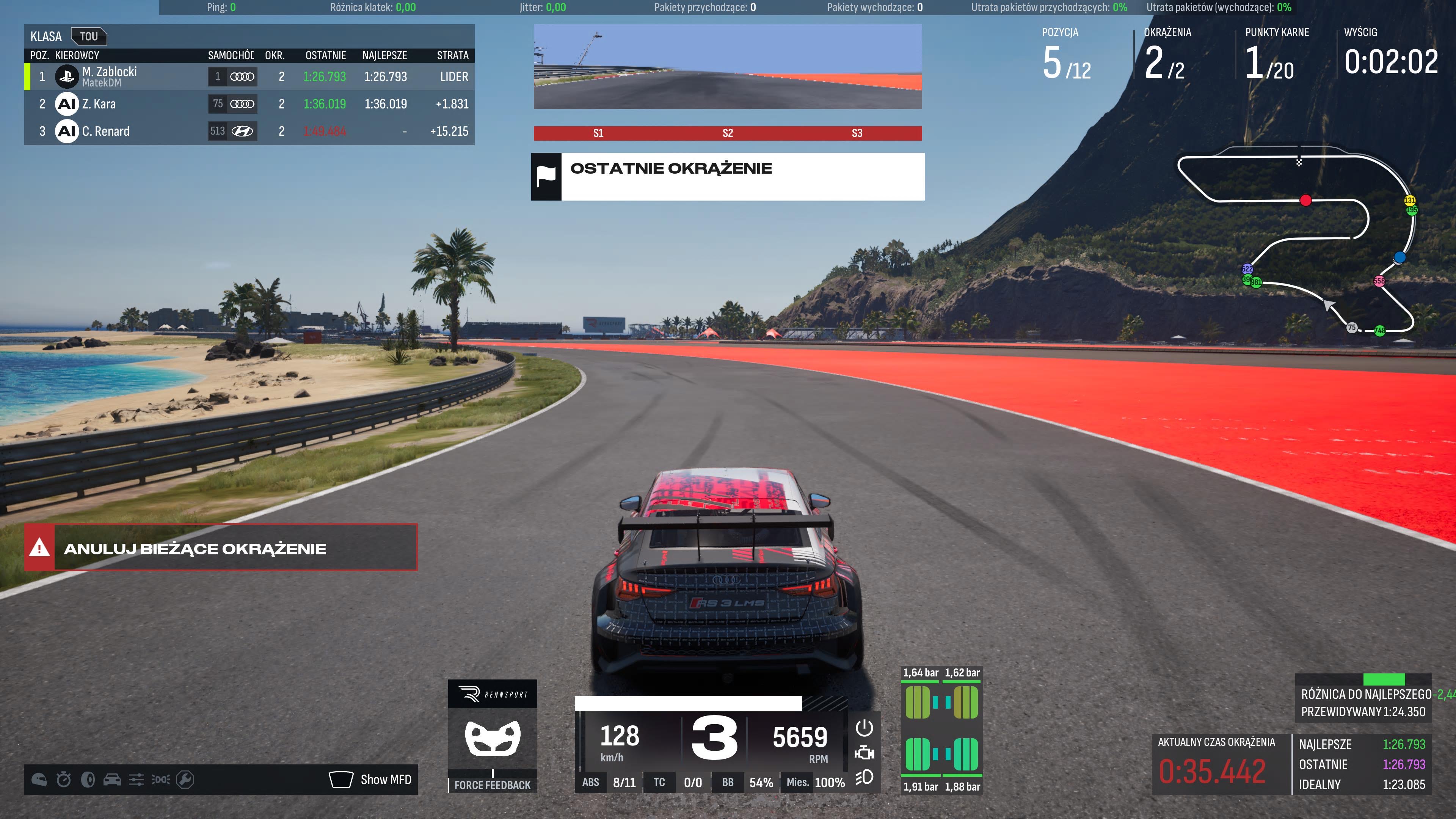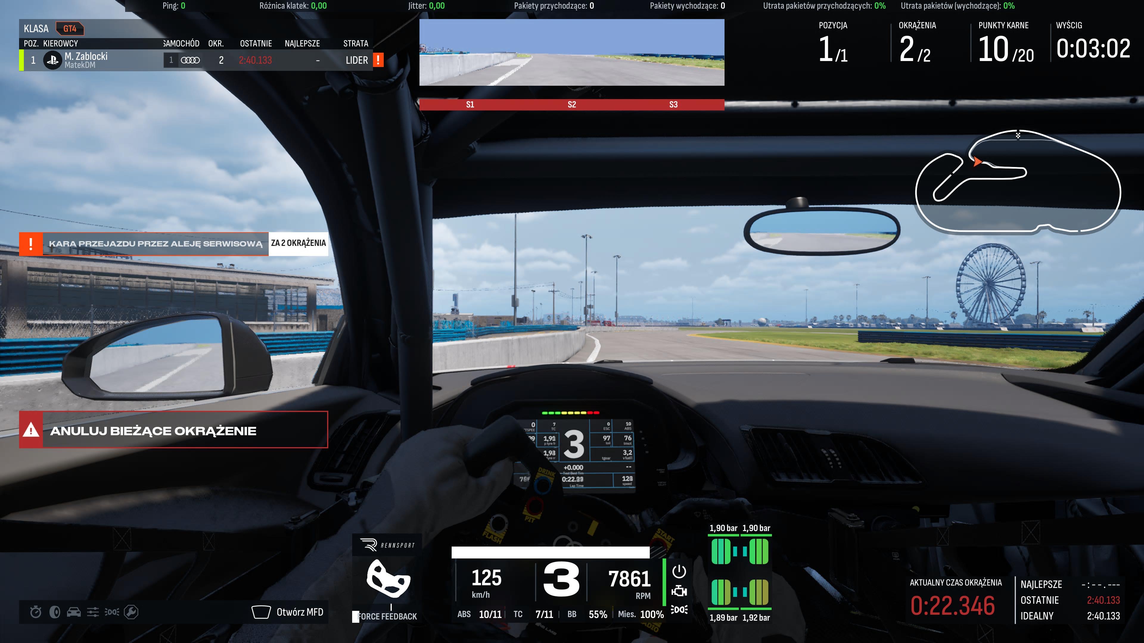 Problem polega na tym, że ten jeden jasny punkt nie jest stabilnym światłem, tylko migającą żarówką. Starty wyścigu bywają absurdalnie łatwe do wykorzystania i pełne exploitów, system kar potrafi zesłać na nas dyskwalifikację za byle drobnostkę, a brak jakiegokolwiek poczucia wspólnoty czy progresji sprawia, że multiplayer jest zbiorem pojedynczych wyścigów, a nie zdrową strukturą społecznościową. Tryby są jeszcze zbyt skromne, ich rotacja monotonna, a całość bardziej przypomina szkic systemu e-sportowego niż gotową, dopracowaną architekturę. W zasadzie nie widzę żadnego sensu, żeby ścigać się tutaj online, bo nagrody nie są tego warte, a frustracja rodzi się olbrzymia, gdy coś pójdzie nie po naszej myśli i dostaniemy drakońskie kary niemal eliminujące sens dalszej jazdy.
