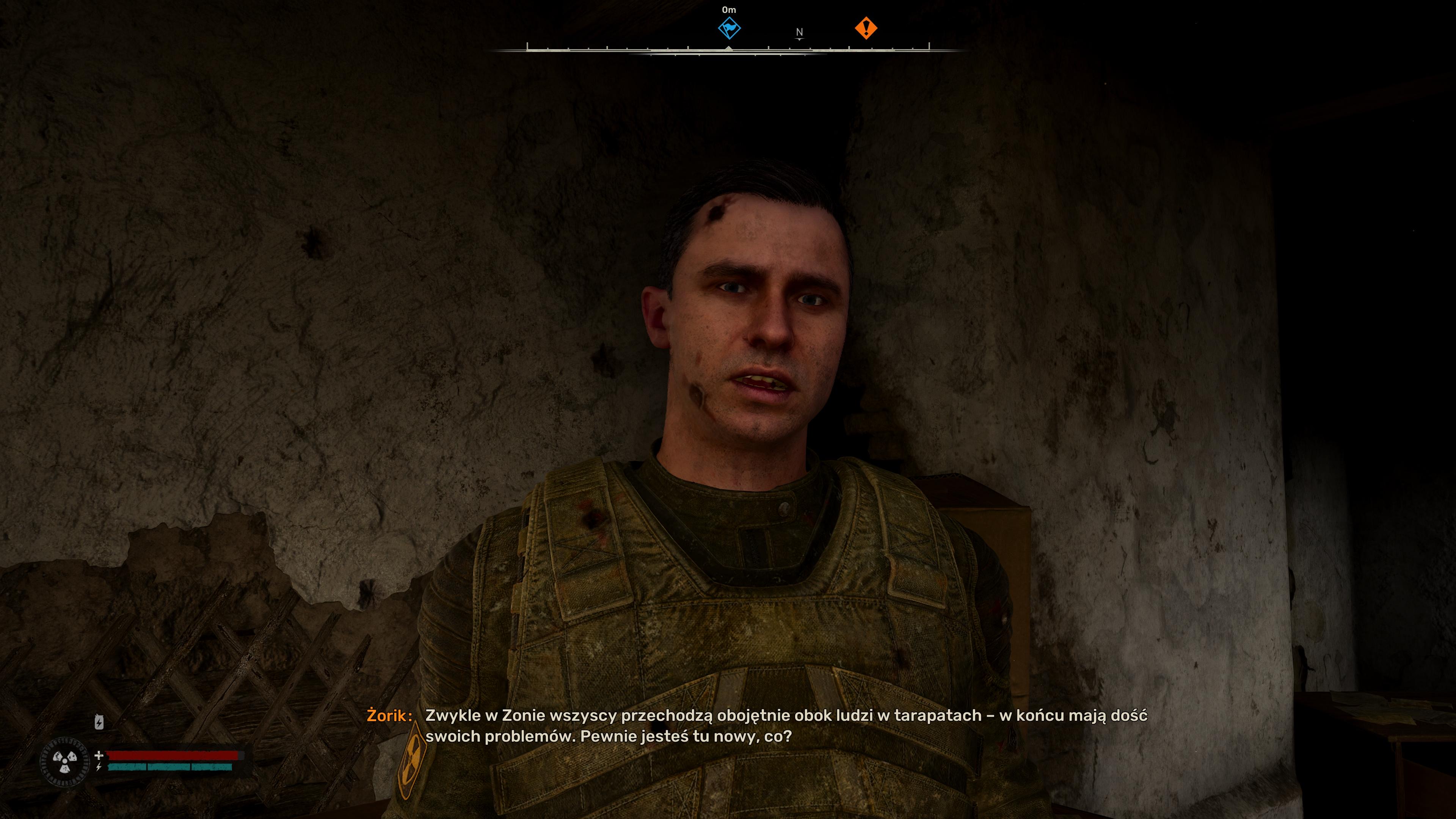 Głośnik w padzie odgrywa rolę miniaturowej krótkofalówki albo radia - słyszymy trzaski detektora, krótkie komunikaty, szumy radiowe, ostrzeżenia o anomalii. Znakomicie to podnosi immersję, bo każdy z tych dźwięków płynie bezpośrednio z DualSense. Co więcej, pasek świetlny dyskretnie reaguje na zagrożenie, a subtelne wibracje pojawiają się wtedy, gdy wchodzimy w zanieczyszczoną strefę, czujemy grunt pod nogami albo obok nas eksploduje anomalia. Gdy ustawiamy skaner do wykrywania tych anomalii, migające światełko LED informuje nas o wartości zagrożenia. Apropo wibracji jeszcze, o której wyżej wspominałem, to haptyka jest tutaj po prostu cudowna. Czujemy otrzymywane obrażenia, kroki stawiane podczas wchodzenia po drabinie czy pikanie skanera. Wszystko zostało znakomicie przeniesione na DualSense. Nie pomięto też panelu dotykowego - przesunięcie palcem w lewo otwiera mapę. W prawo z kolei - dziennik misji.