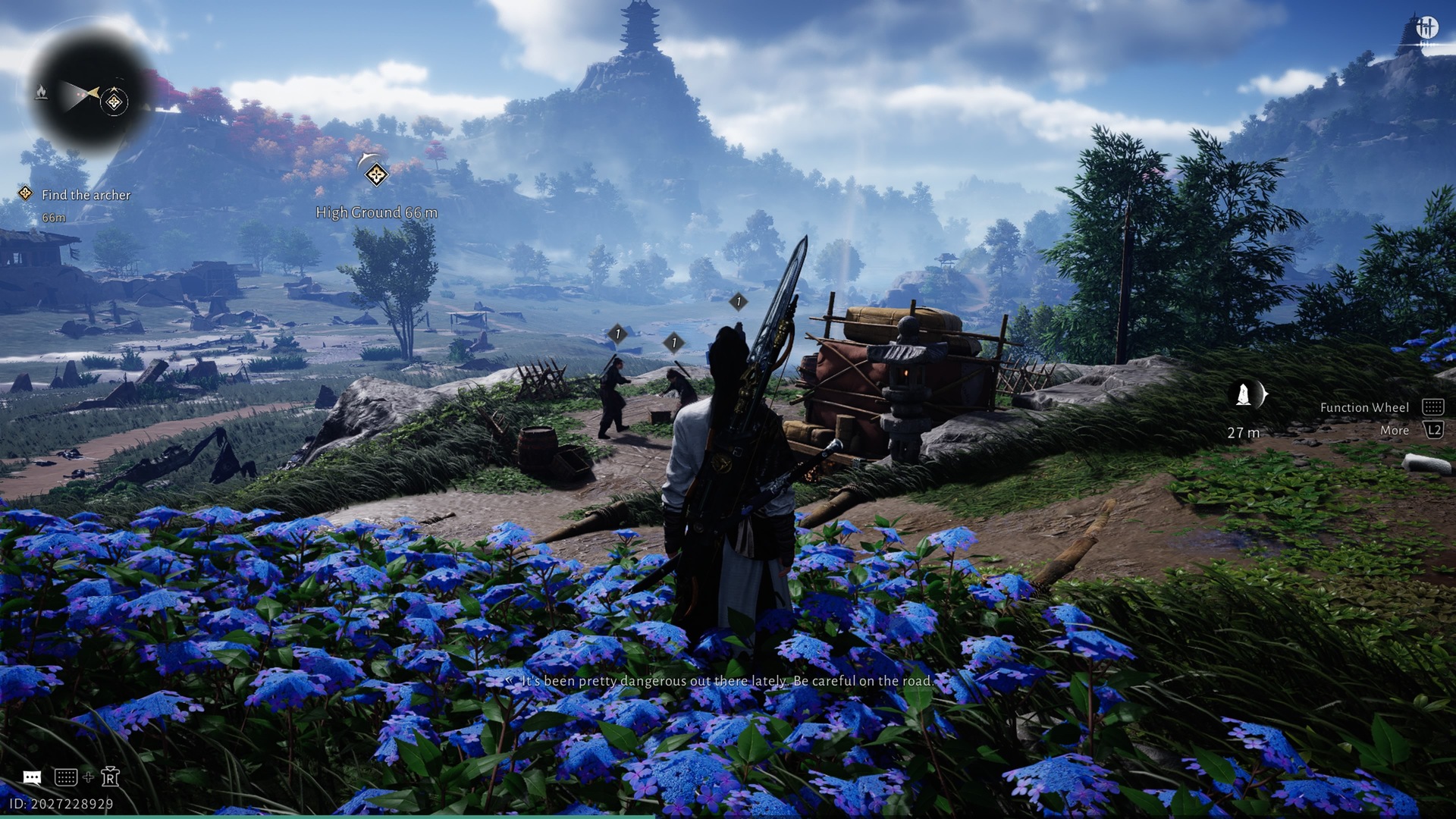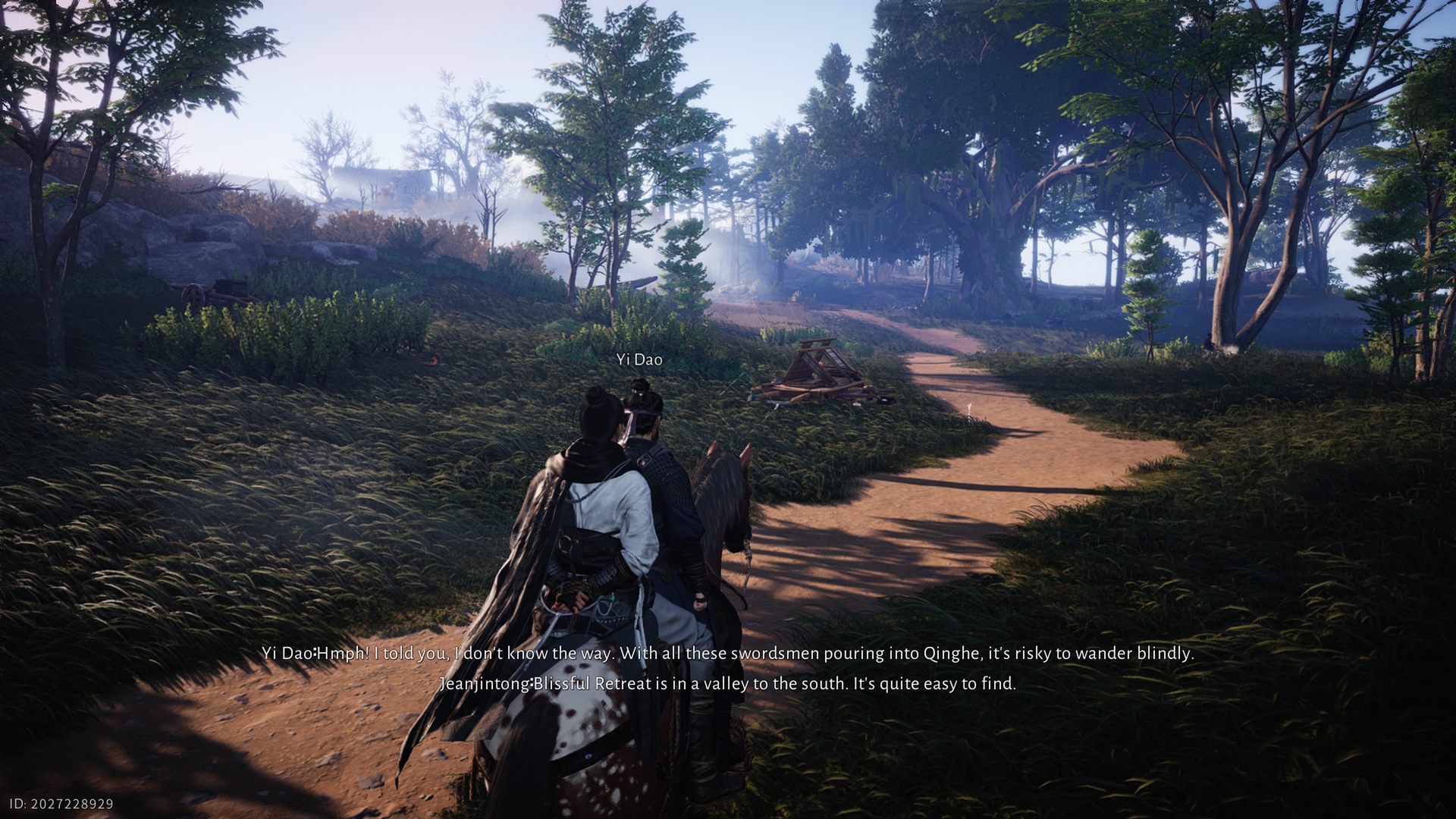 Pod względem graficznym tytuł na pierwszy rzut oka przypominał mi Ghost of Tsushima. I nie chodzi wyłącznie o wspomnianą malowniczość krajobrazów. Charakterystyczne ujęcie kamery podczas jazdy konnej w intro, znajomo wyglądające trawy i krzewy – ba, nawet melodia, którą postać gra na flecie, brzmi podobnie do tego, czym zachwycał nas Jin Sakai.