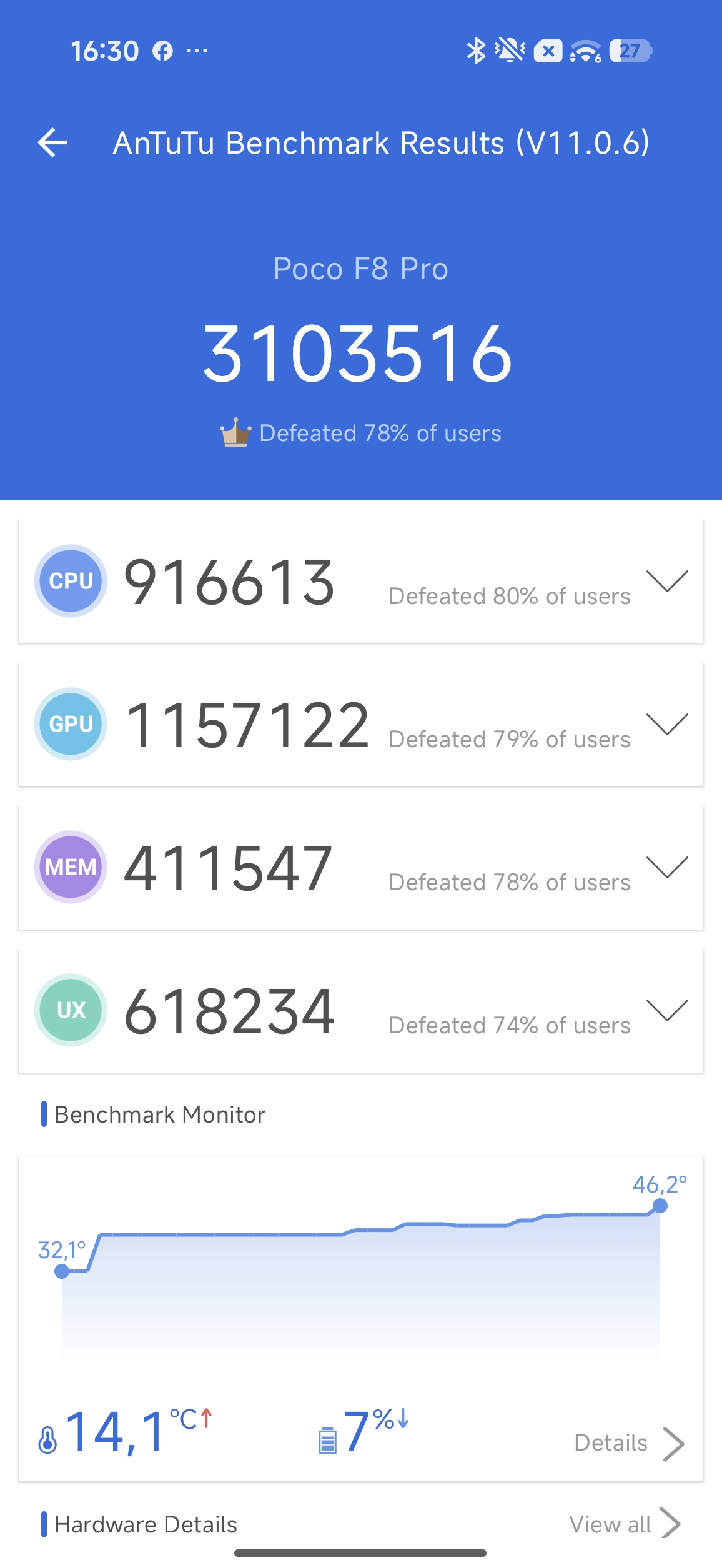 Tyle teorii, a teraz zejdźmy na ziemię, bo w praktyce te różnice są dla zwykłego śmiertelnika – a nawet dla hardkorowego gracza – całkowicie pomijalne. POCO F8 Pro to wciąż wydajnościowy walec, który bezlitośnie rozjeżdża tegoroczne „święte krowy” konkurencji. Galaxy S25 Ultra czy iPhone 17 Pro Max, kosztujące trzykrotność ceny tego smartfona, w testach syntetycznych kończą zabawę w okolicach 2,5 miliona punktów, oglądając plecy chińskiego średniaka. Codzienne użytkowanie F8 Pro to poezja płynności. Rdzenie Oryon taktowane zegarem 4.32 GHz zapewniają responsywność, której nie powstydziłby się komputer stacjonarny, a wynik Geekbench na poziomie 8384 punktów w wielowątkowości to gwarancja, że zapas mocy wystarczy nam na lata, nawet gdy aplikacje staną się jeszcze bardziej zasobożerne.