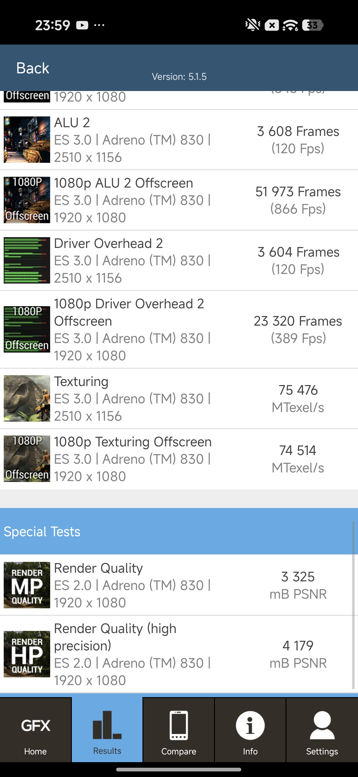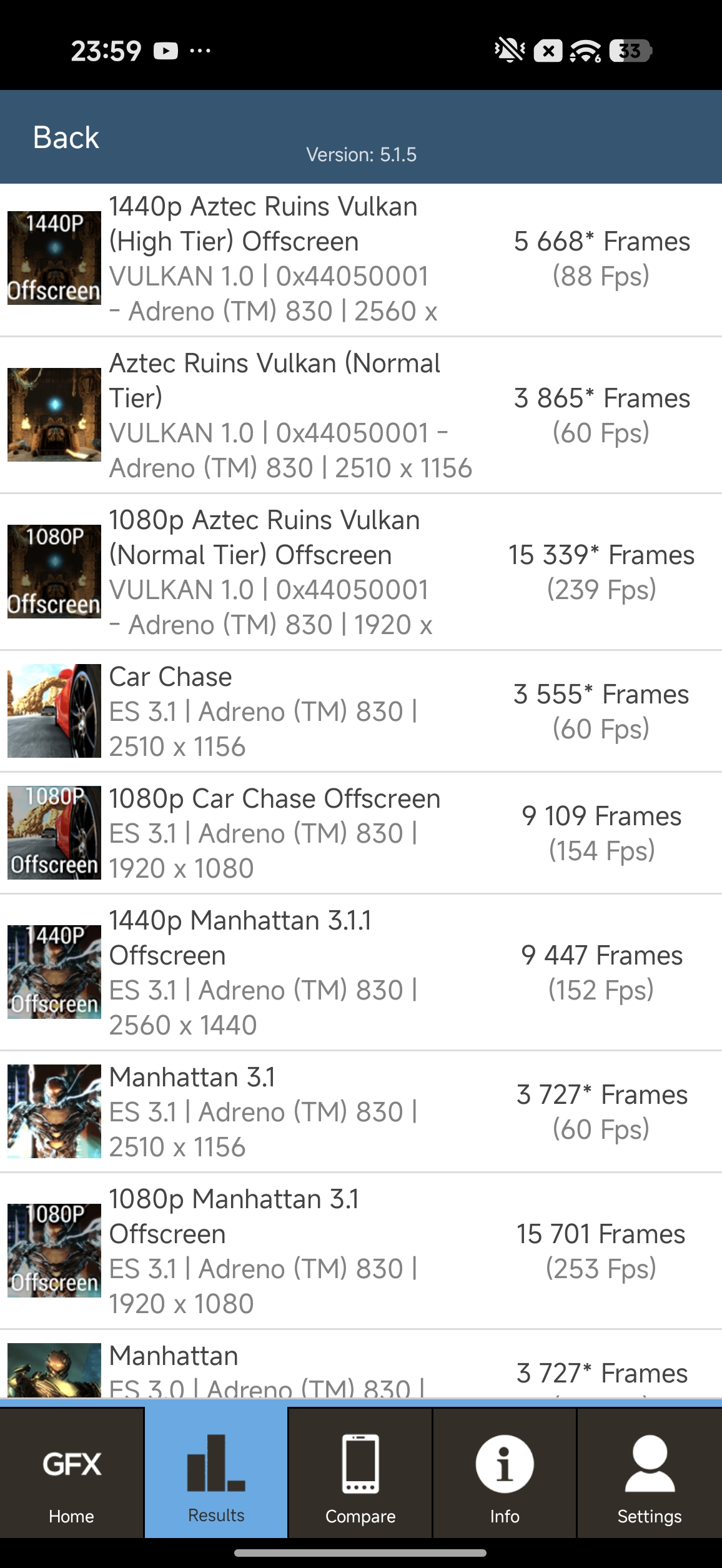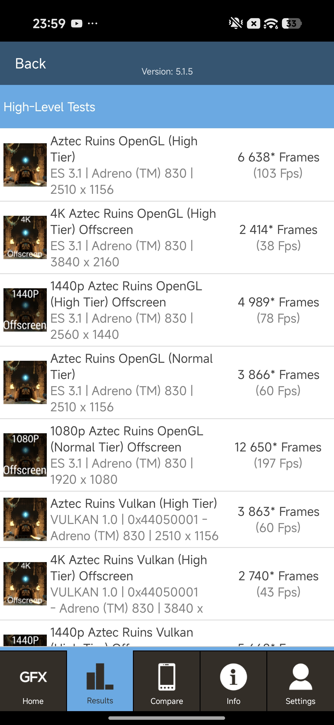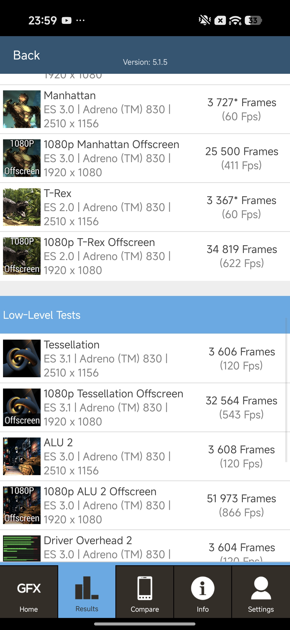 Wyniki wydajności w GFX Bench