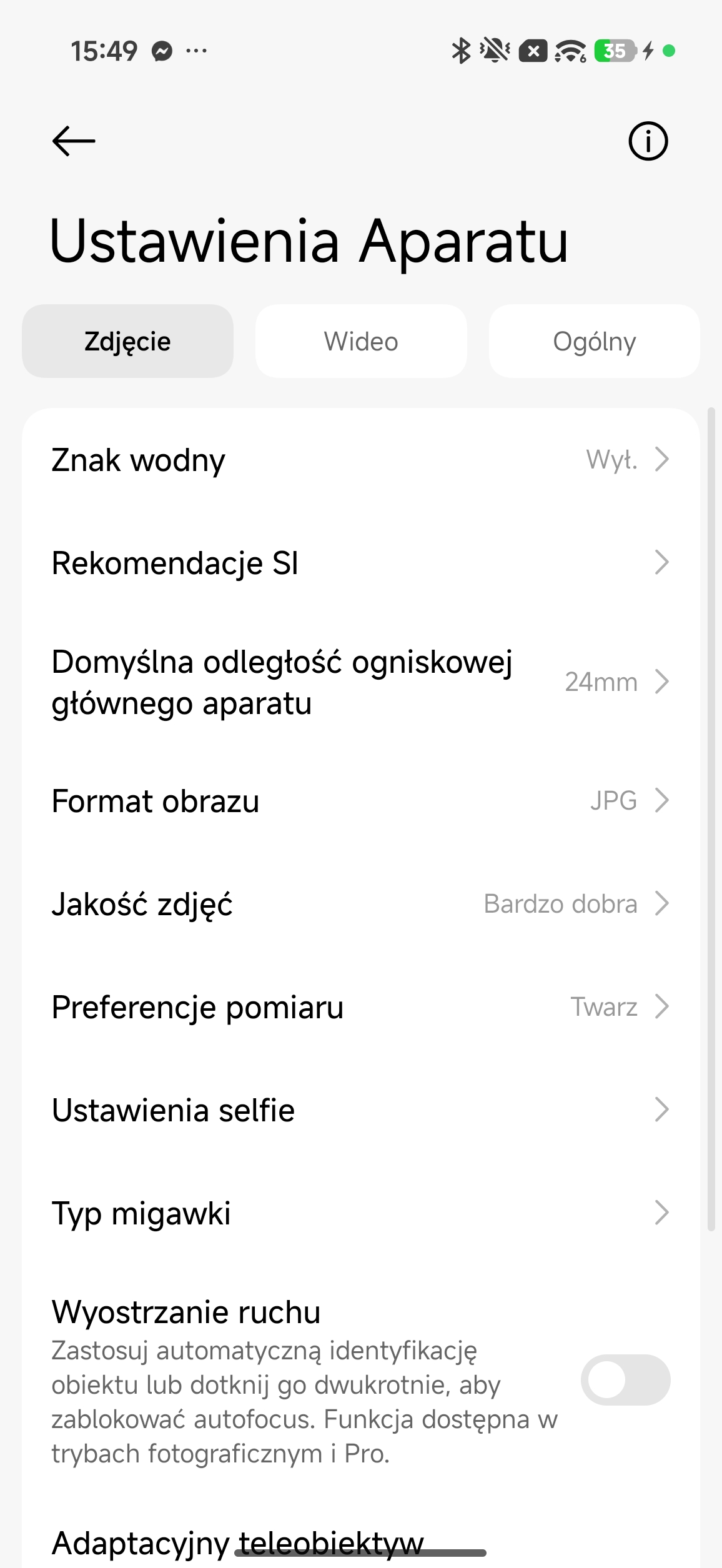 Wygląd aplikacji aparatu i dostępnych możliwości