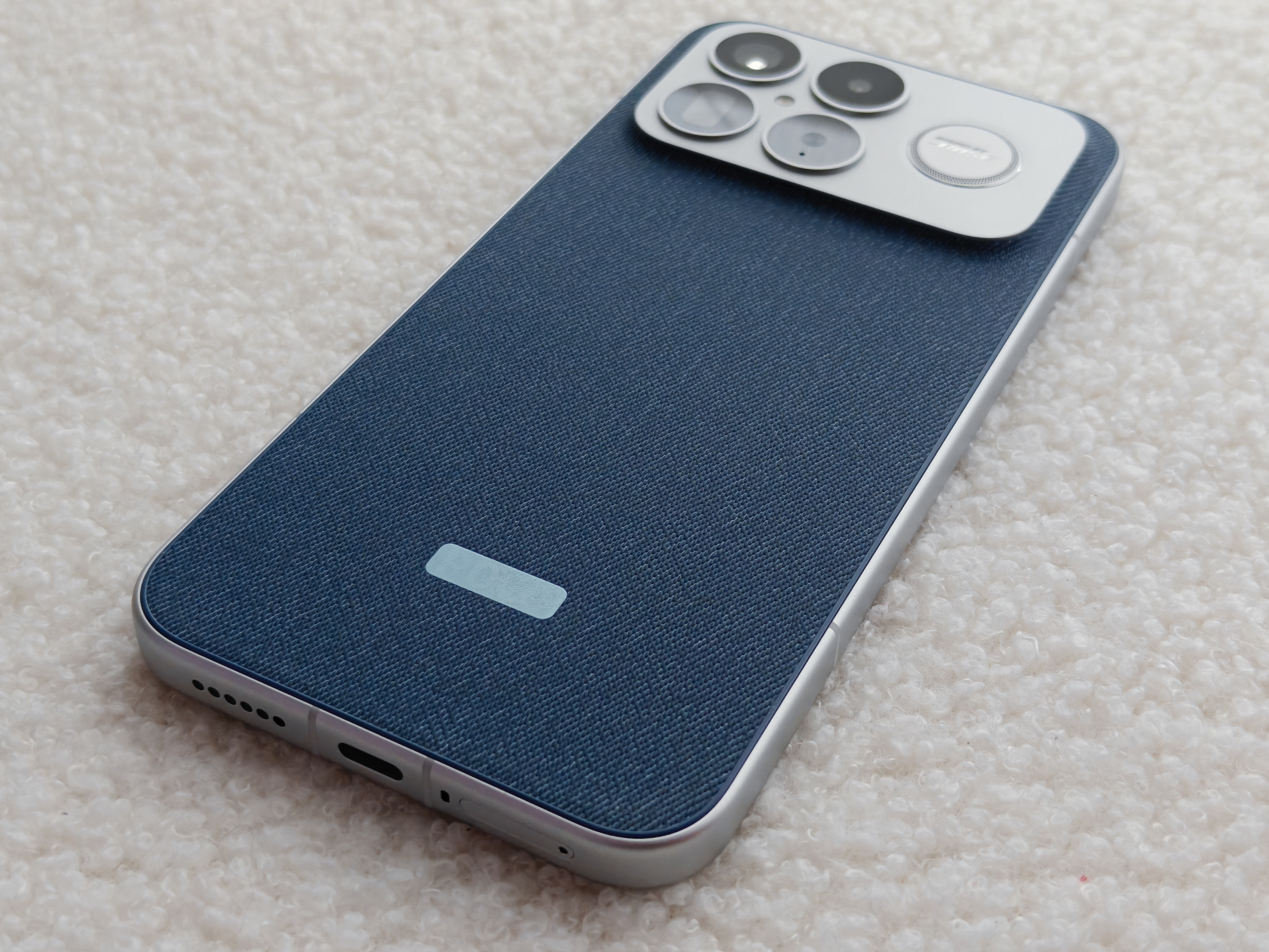 Wzornictwo POCO F8 Ultra stanowi wyraźną ewolucję w stronę industrialnego minimalizmu, czerpiącą inspiracje z rozwiązań spopularyzowanych przez Apple. Mamy tu do czynienia z masywną, solidną bryłą o płaskich krawędziach i delikatnie zaokrąglonych narożnikach. Do naszej redakcji trafił wariant niebieski (Denim Blue) i trzeba przyznać, że decyzja o wykorzystaniu nanotechnologicznego materiału imitującego fakturę jeansu była strzałem w dziesiątkę. To rozwiązanie wykracza poza zwykłą estetykę - plecki urządzenia są nie tylko przyjemne i "ciepłe" w dotyku, ale przede wszystkim wykazują fenomenalną odporność na zarysowania oraz całkowitą niewrażliwość na odciski palców. W przeciwieństwie do szklanych konkurentów, ten model aż prosi się o noszenie bez etui, prezentując się przy tym znakomicie i oferując pewny, antypoślizgowy chwyt.