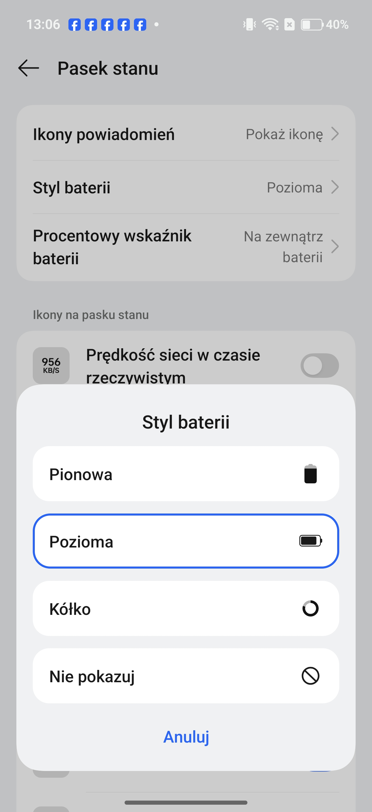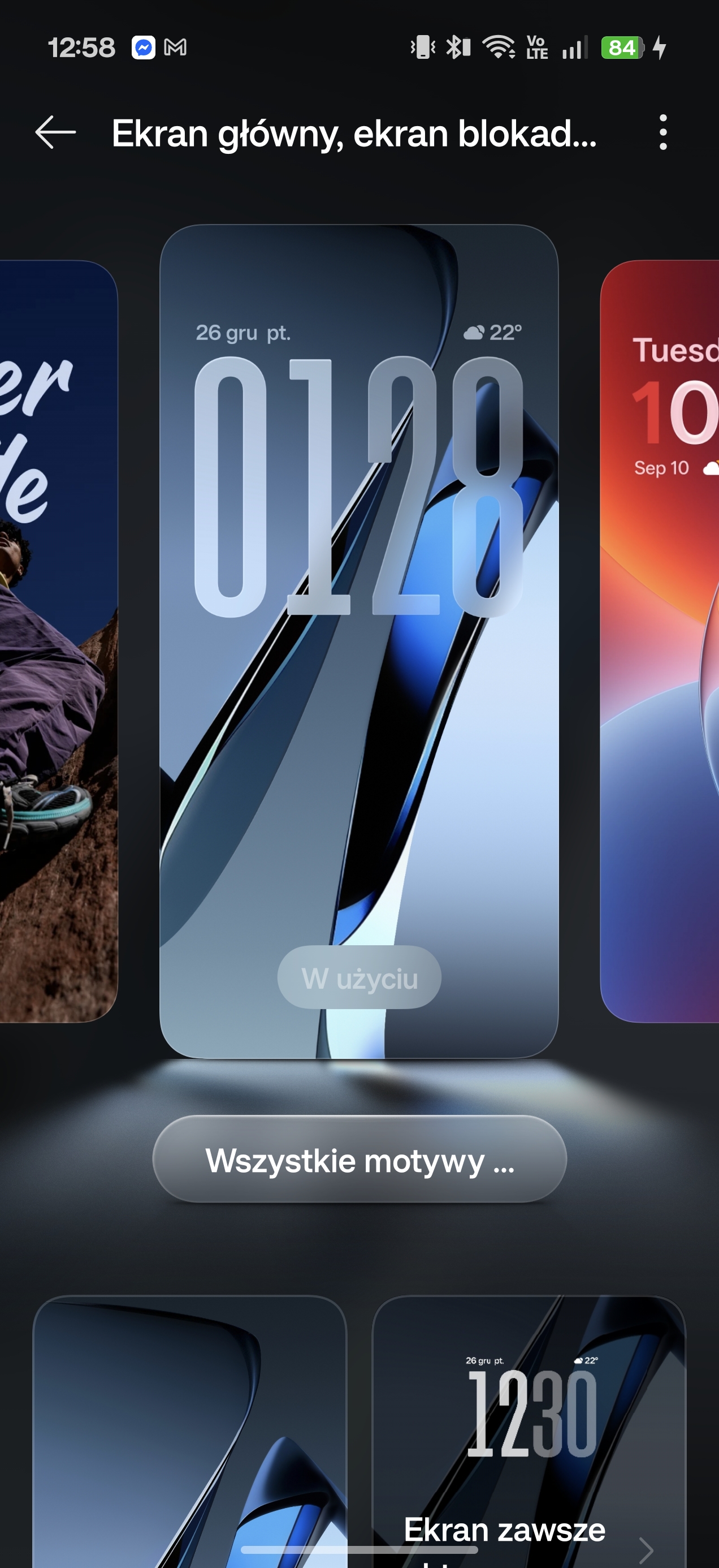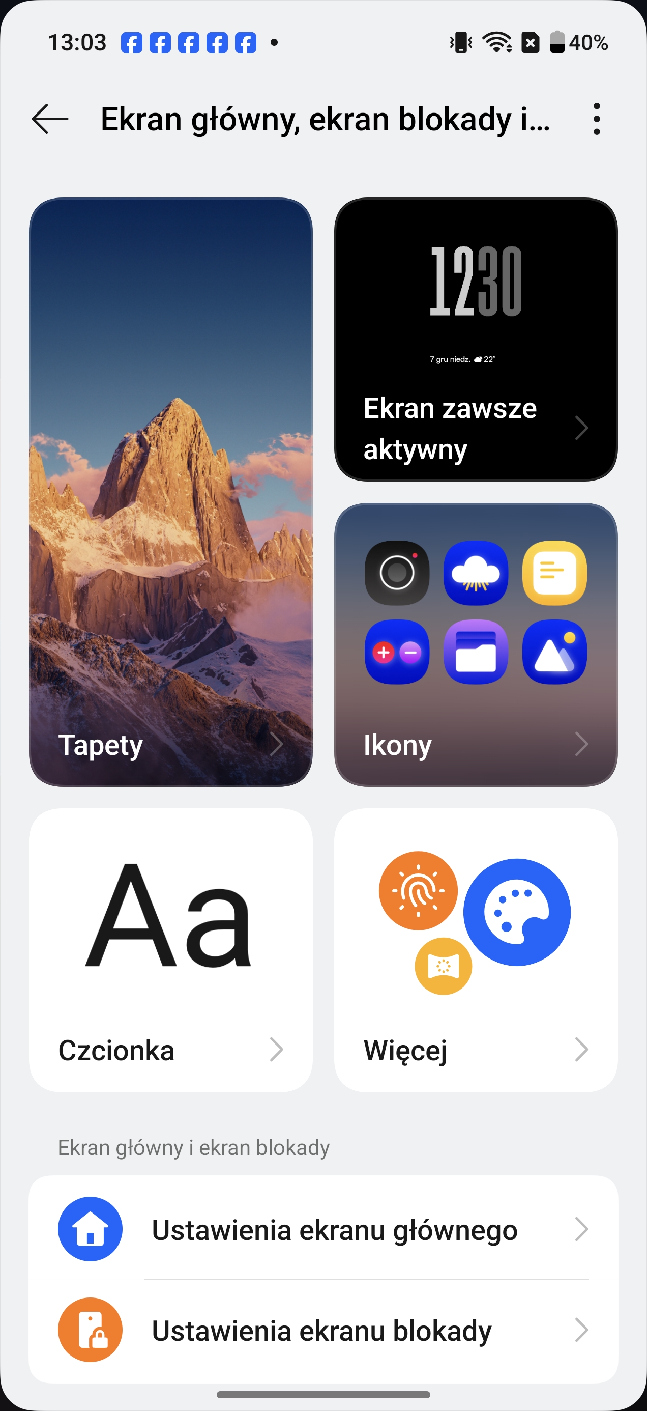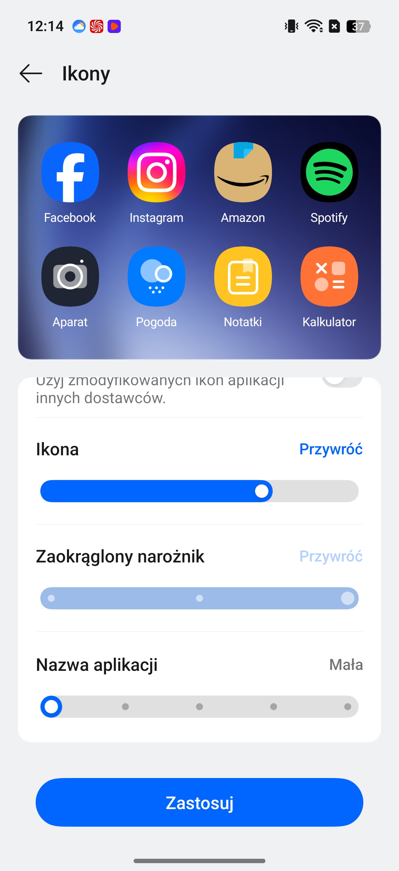 Wygląd ustawień i niektórych opcji w systemie operacyjnym