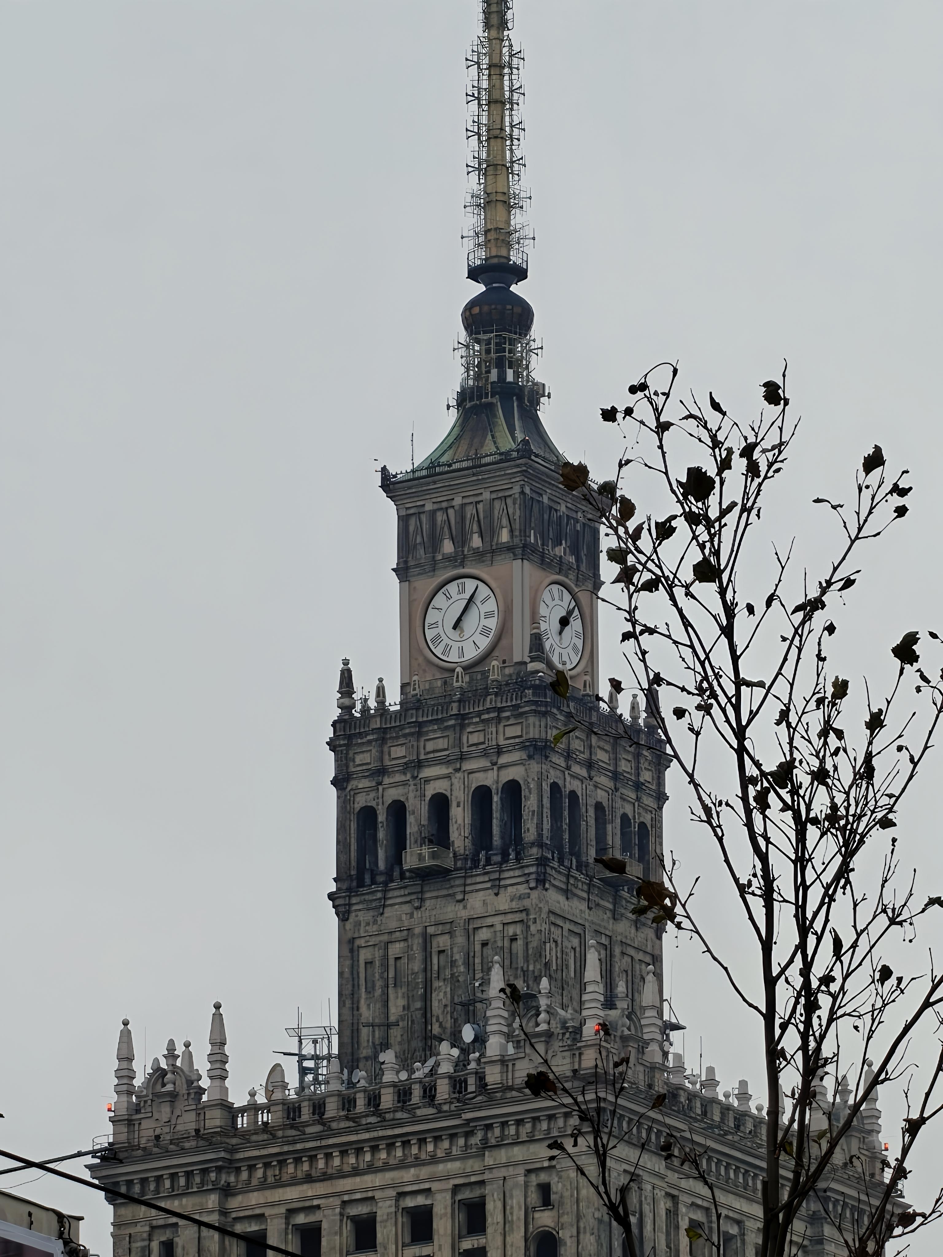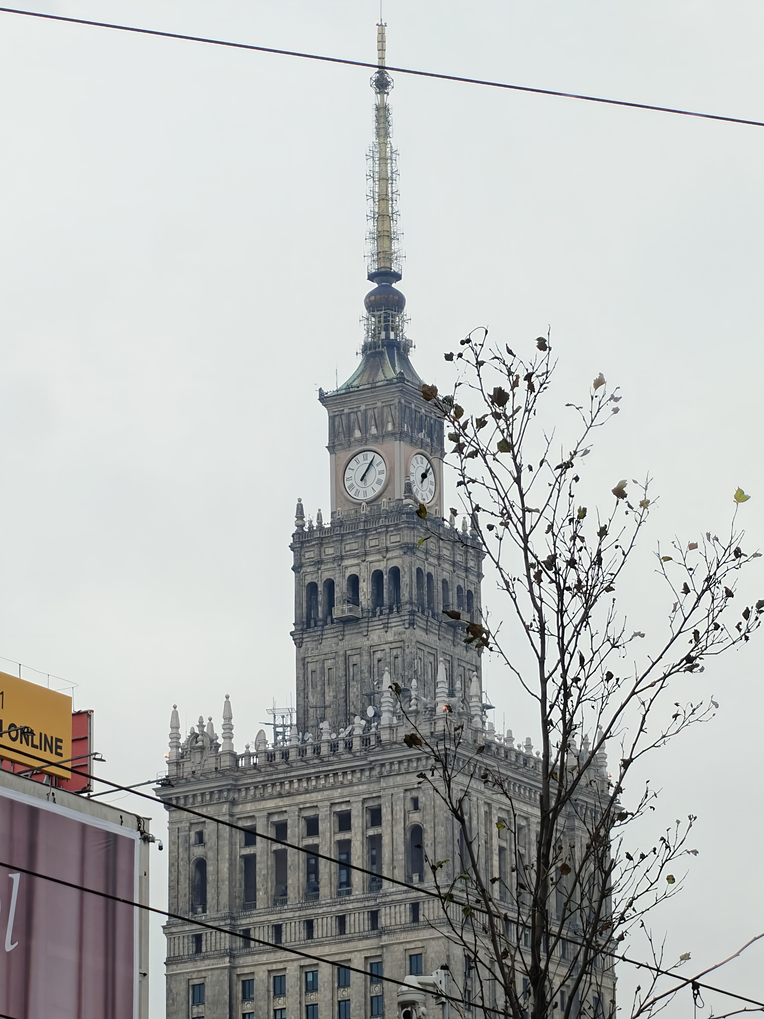 Zdjęcia Pałacu Kultury zrobione ze zbliżeniem 3,5x oraz 10x