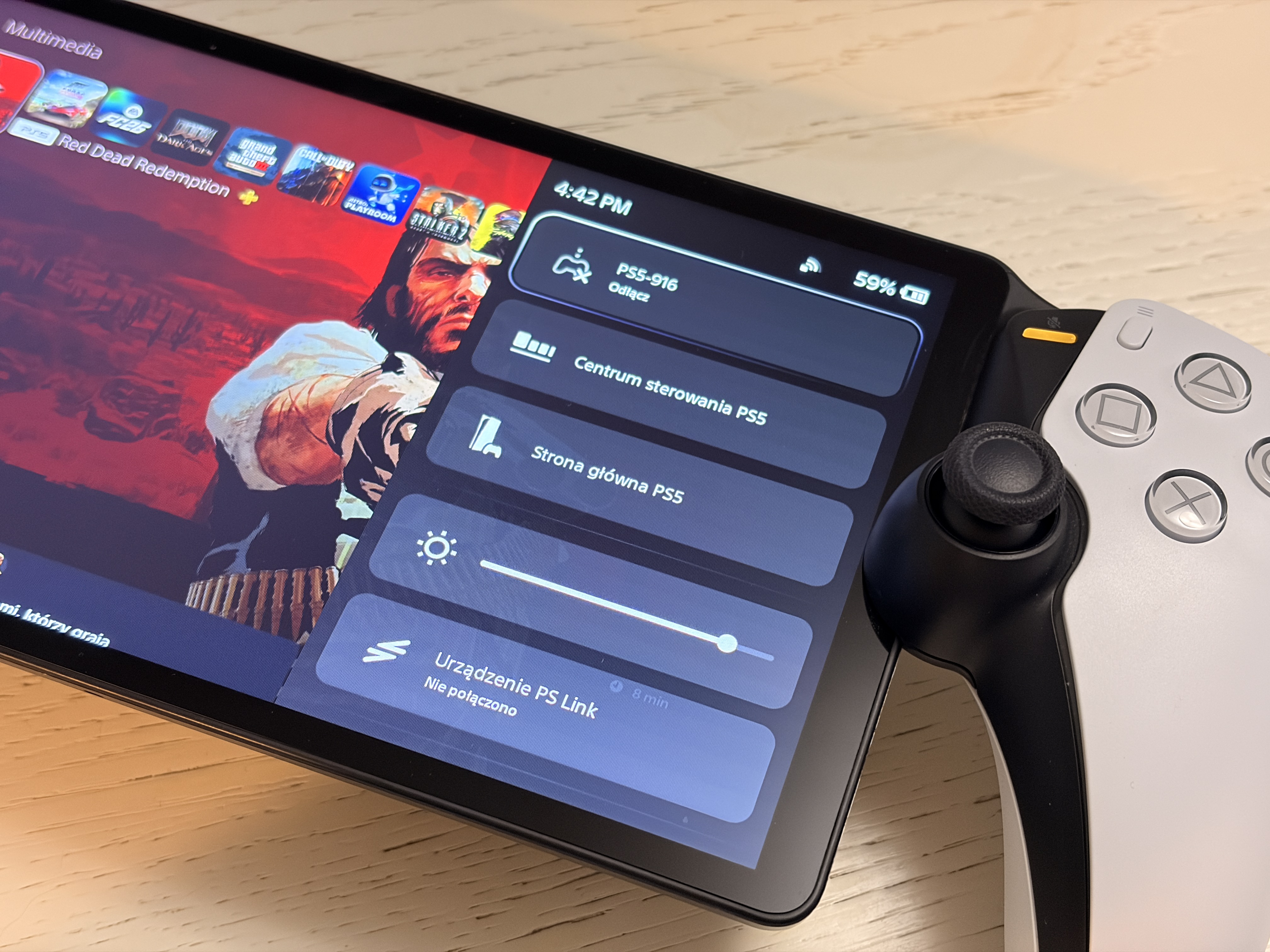 Drugą zaletą jest możliwość grania z dowolnego miejsca w gry znajdujące się na naszej konsoli. Co prawda, to nie jest ekskluzywne dla PlayStation Portal i możemy tak zrobić właściwie z każdym urządzeniem wspierającym granie bezprzewodowe, ale Sony dostosowało sprzęt w taki sposób, żeby wszystko było wygodne i działało względnie bezproblemowo. Połączenie z konsolą następuje automatycznie. Gdy wyjedziemy do jakiegoś hotelu albo znajdziemy się na drugim końcu świata, ale z dobrym internetem, wówczas możemy podpiąć się do naszej PS5 i grać - jakość będzie pewnie dyskusyjna, ale zdołamy przejść jeden czy dwa poziomy w jakiejś grze. Czy poleciłbym ten sprzęt komuś, kto gra w 4K/120 Hz na dobrym TV OLED? Nie. Ale jeśli są tutaj osoby, które nie przywiązują takiej wagi do jakości, a chcą po prostu w coś pograć, nie mając dostępu do TV, PS Portal sprawdzi się całkiem nieźle. Będzie wystarczający. Nadal jest trochę drogi (patrząc na wykastrowaną funkcjonalność), ale ostatecznie spełni swoje zadanie. Jest wygodny, dość lekki, ładny i dla dziecka może być świetnym rozwiązaniem.