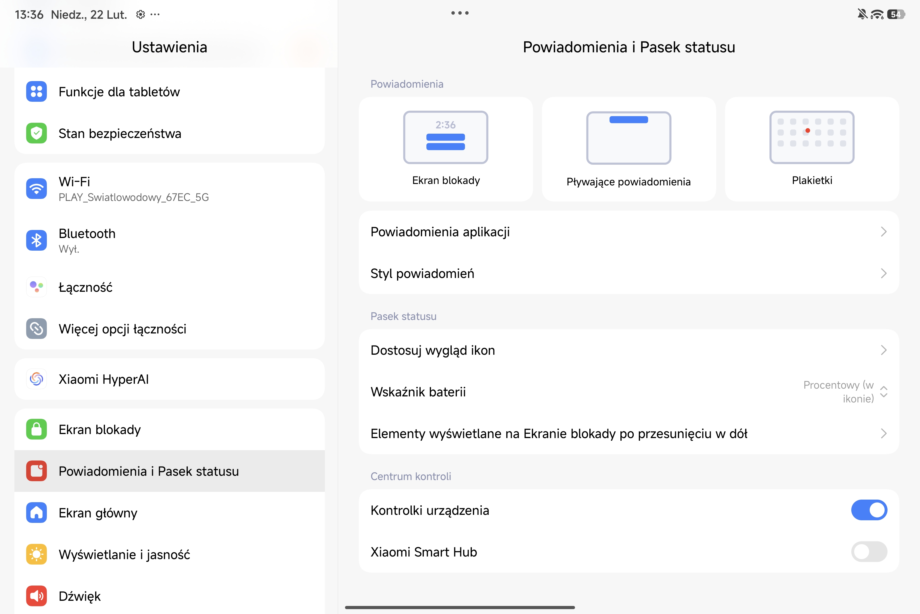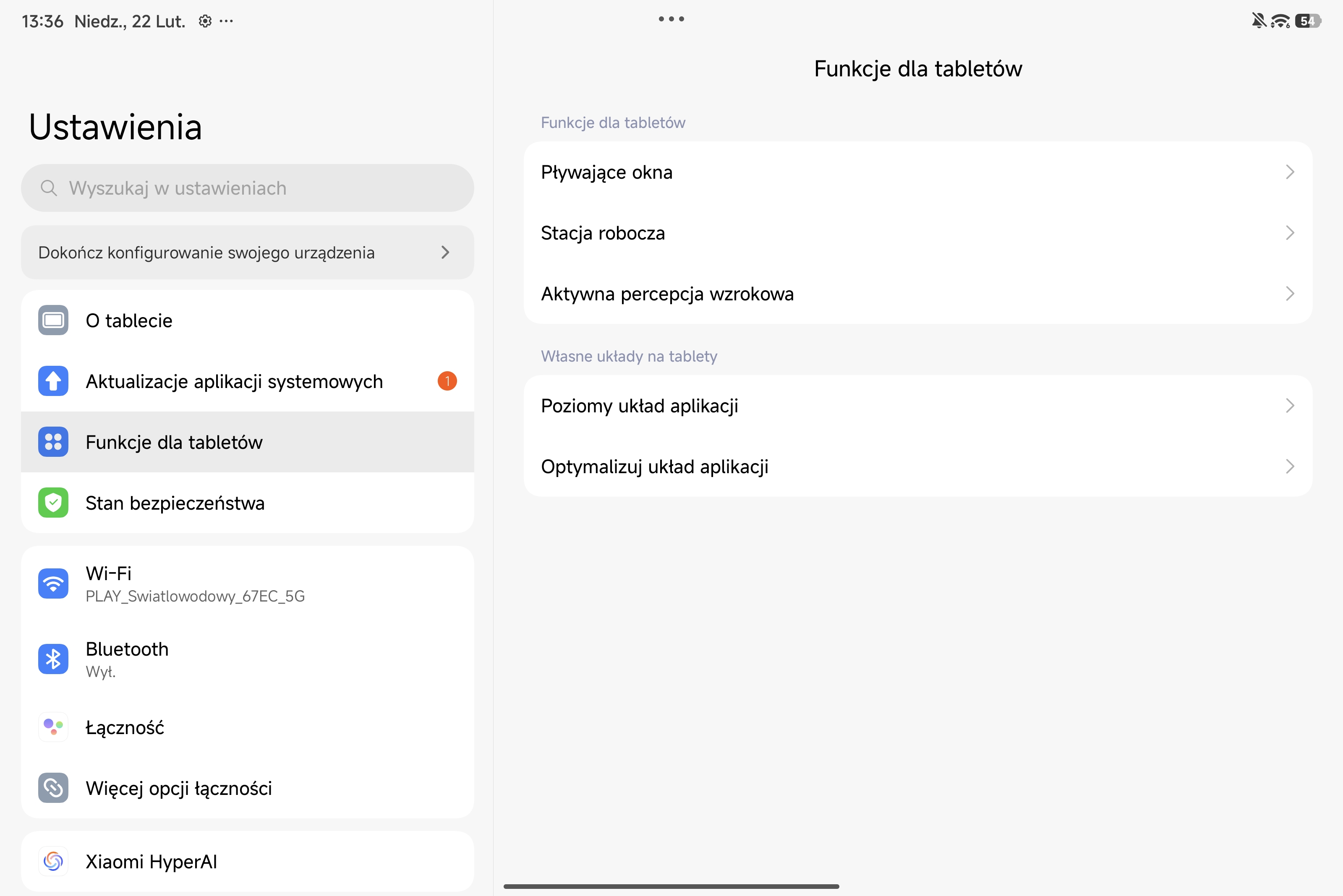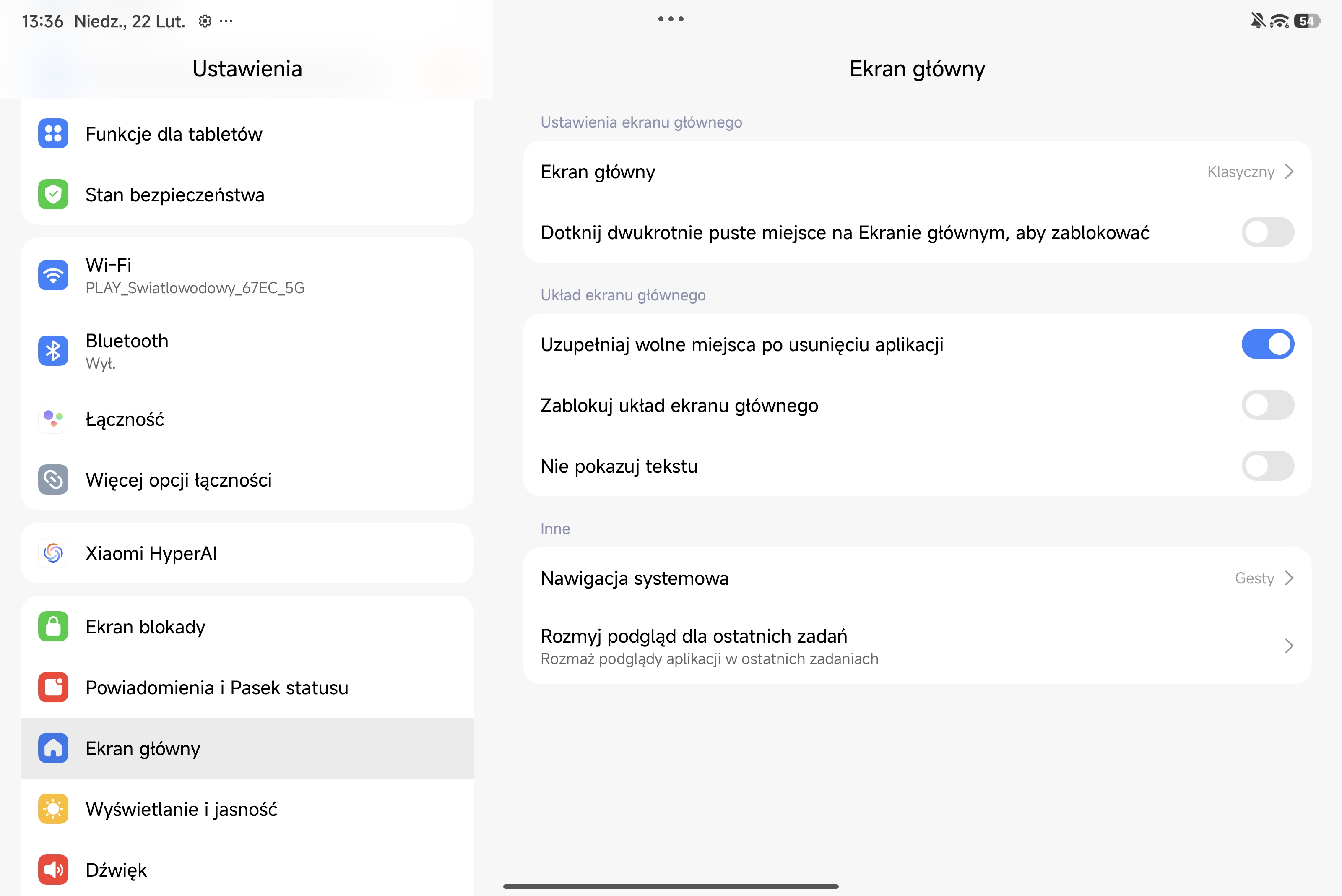 Wygląd systemu operacyjnego i ustawień tabletu