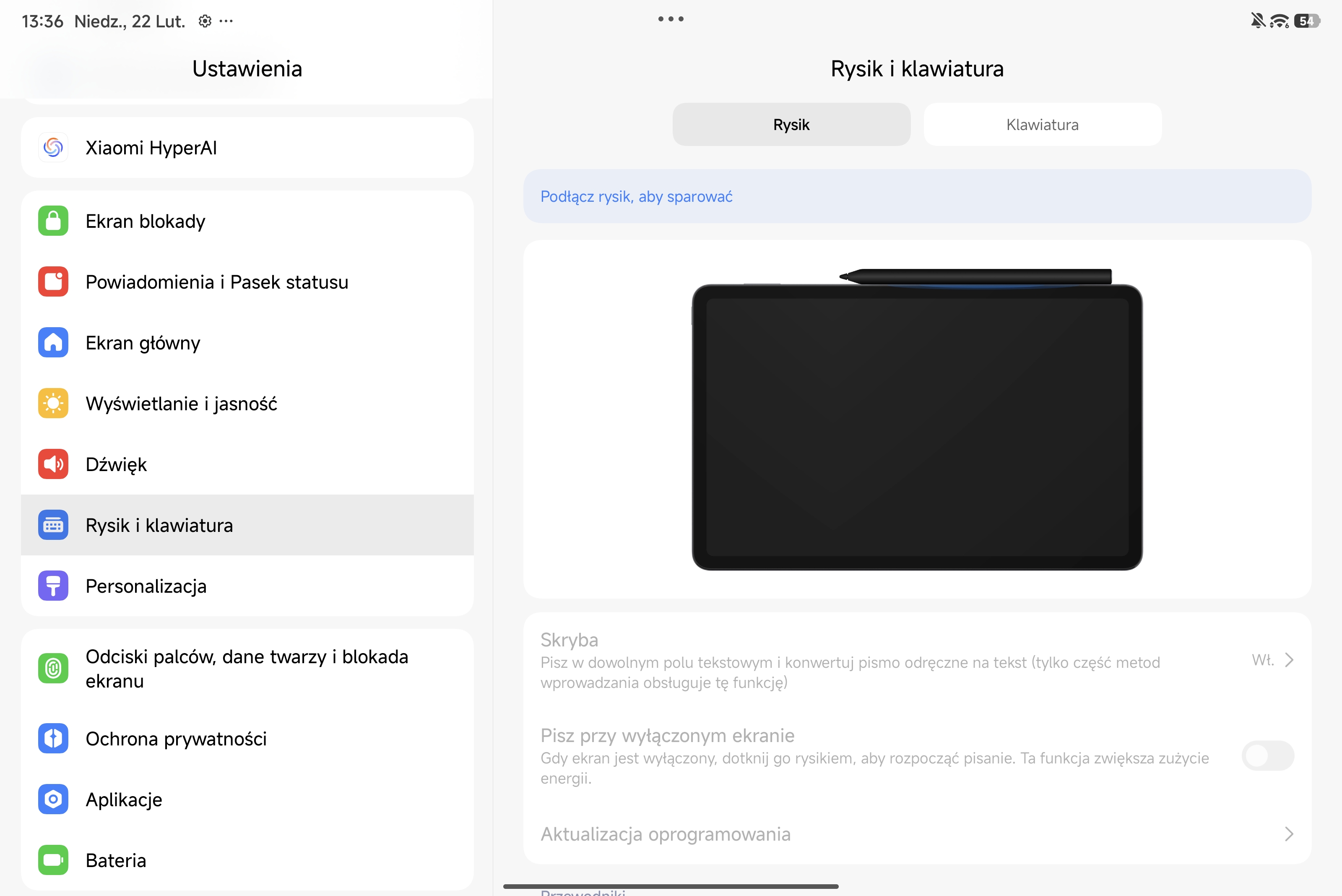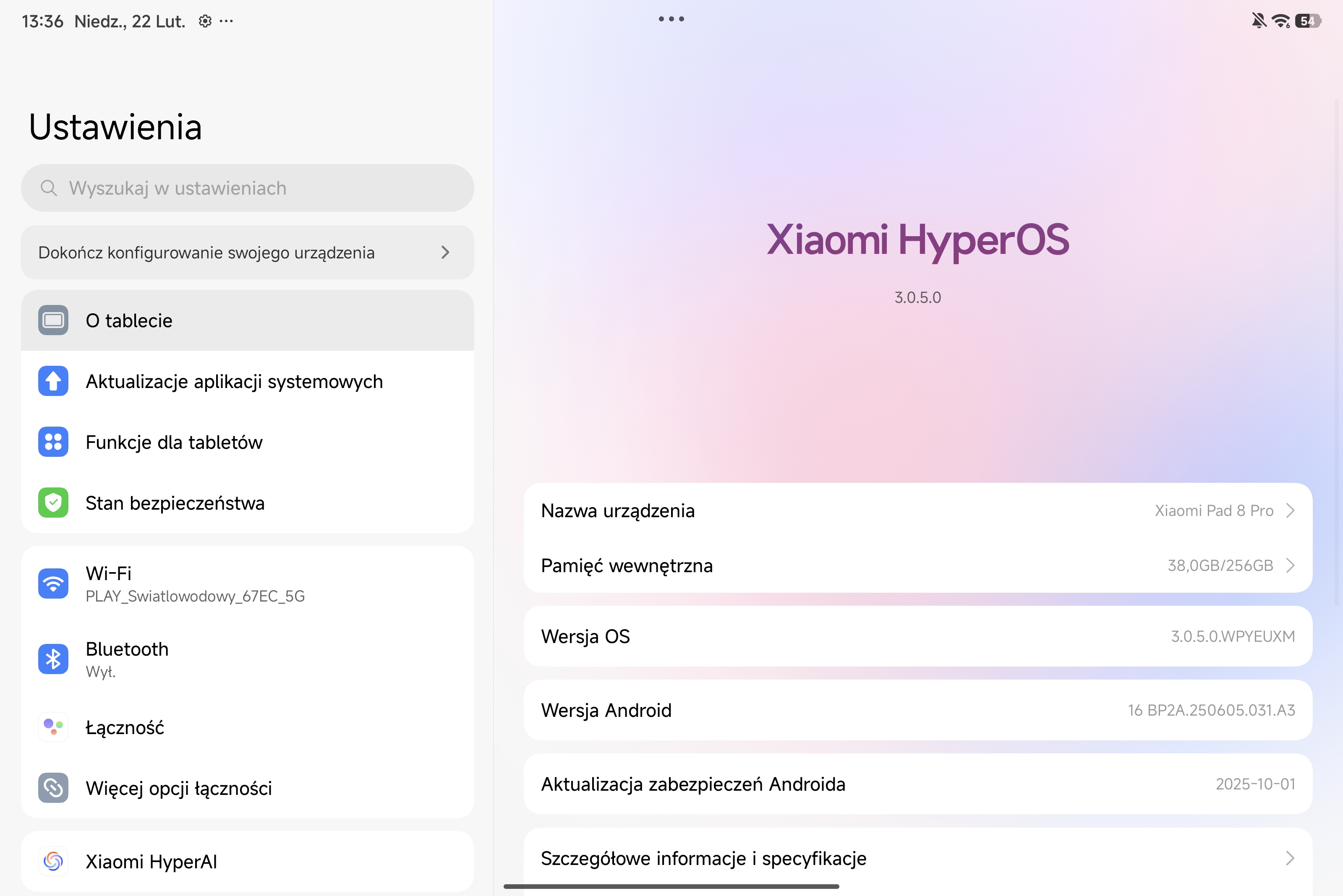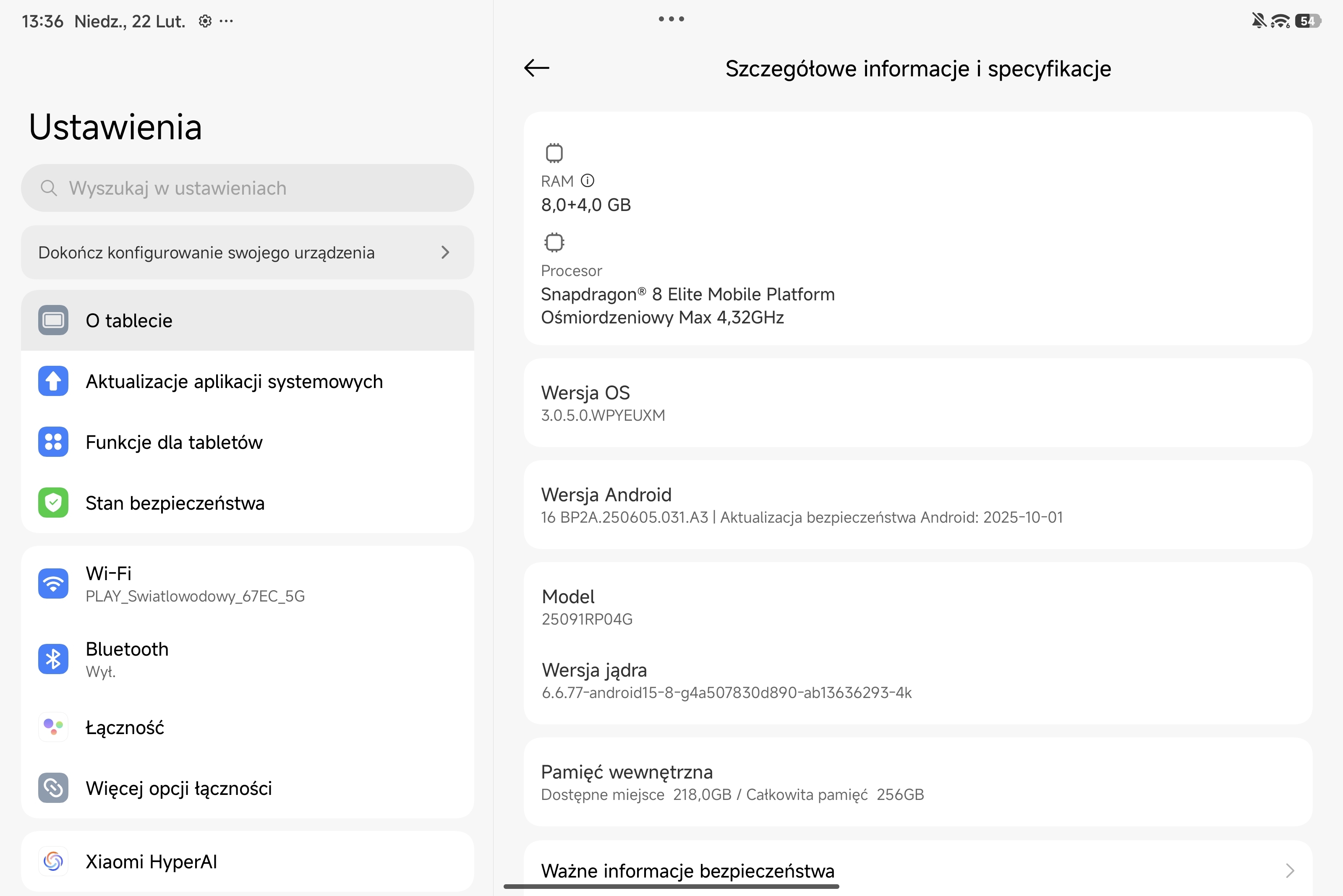 Xiaomi Pad 8 Pro pracuje pod kontrolą interfejsu HyperOS 3, opartego na architekturze systemu Android 16. Oprogramowanie skupia się na optymalizacji wielozadaniowości i sprawnym zarządzaniu zasobami - system potrafi w czasie rzeczywistym obniżać rozdzielczość aplikacji zawieszonych w tle, co mierzalnie wydłuża czas pracy na jednym ładowaniu. Z perspektywy produktywności kluczowy jest dedykowany tryb stacji roboczej oraz zaawansowany podział ekranu, pozwalający na elastyczną pracę w układach 5:5 lub 1:9. Domyślne ładowanie stron internetowych w wersji desktopowej, pełna obsługa kursora oraz natywna integracja z oprogramowaniem WPS Office PC znacząco ułatwiają edycję dokumentów. Dostęp do systemu zabezpiecza czytnik linii papilarnych wbudowany w przycisk zasilania na bocznej ramce, który reaguje na dotyk natychmiastowo i bezbłędnie.