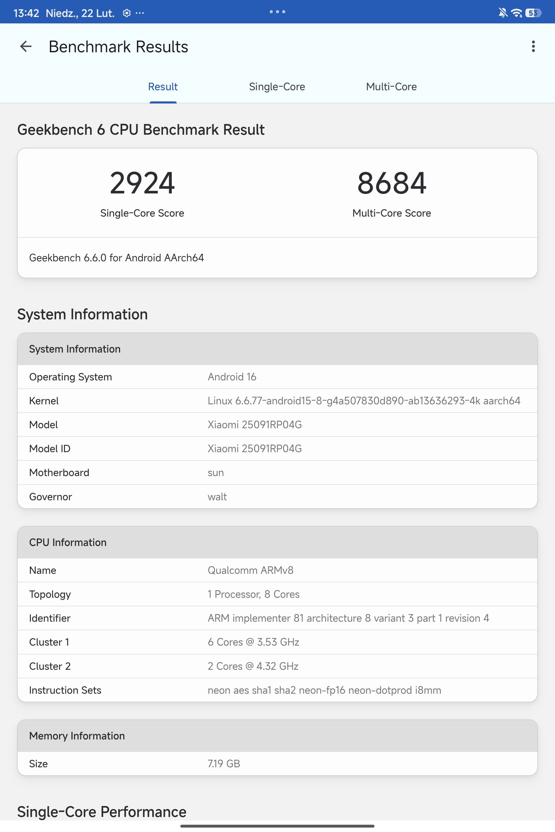 Zastosowany procesor to jednostka o ogromnej mocy obliczeniowej, która zarówno w testach, jak i w codziennym obciążeniu bez najmniejszego problemu deklasuje układy stosowane w urządzeniach wycenianych zauważalnie wyżej. Xiaomi po prostu odrobiło lekcje i zawiesiło poprzeczkę bardzo wysoko. Jeśli dorzucimy do tego błyskawiczną pamięć wewnętrzną i obsługę najnowszych standardów łączności, wniosek nasuwa się sam. To nie jest gadżet na jeden czy dwa sezony, ale wysoce racjonalna, przemyślana inwestycja. Otrzymujemy sprzęt, który zagwarantuje nam spokój i absolutną stabilność pracy przez długie lata.