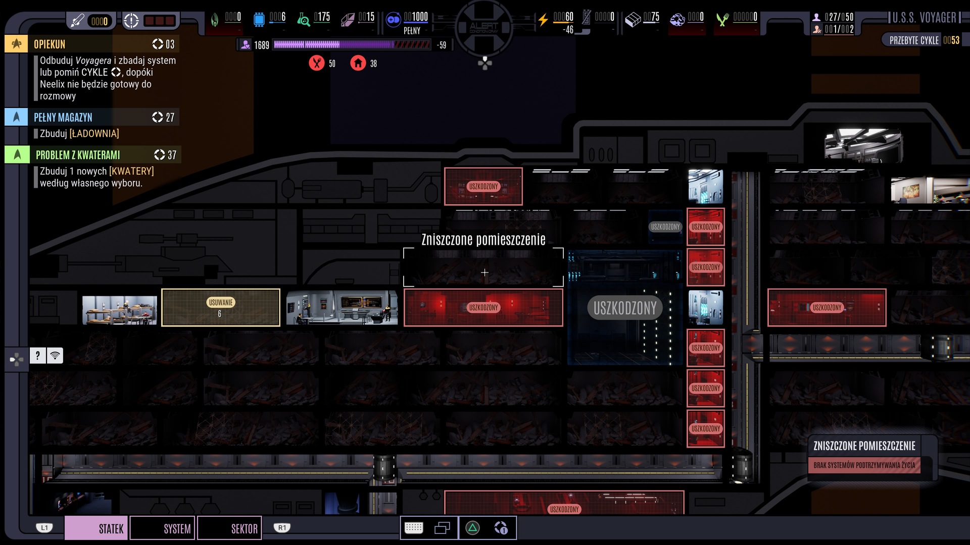 Energię z kolei przydzielamy umiejętnie do każdej z sekcji/pięter statku, umożliwiając ich działanie. Energia to mocno ograniczony zasób, więc czasem trzeba nieźle kombinować z gospodarowaniem nią, wyłączając mniej przydatną w danej chwili jednostkę. Zresztą cały czas coś nam się tu psuje i trzeba też poświęcać nasze ograniczone zasoby (ludzkie i materialne) na naprawę obiektu – inaczej gra się skończy. Poza tym mamy opcję rozbudowy poszczególnych elementów statku, do czego są potrzebne także inne niż deuter surowce.
