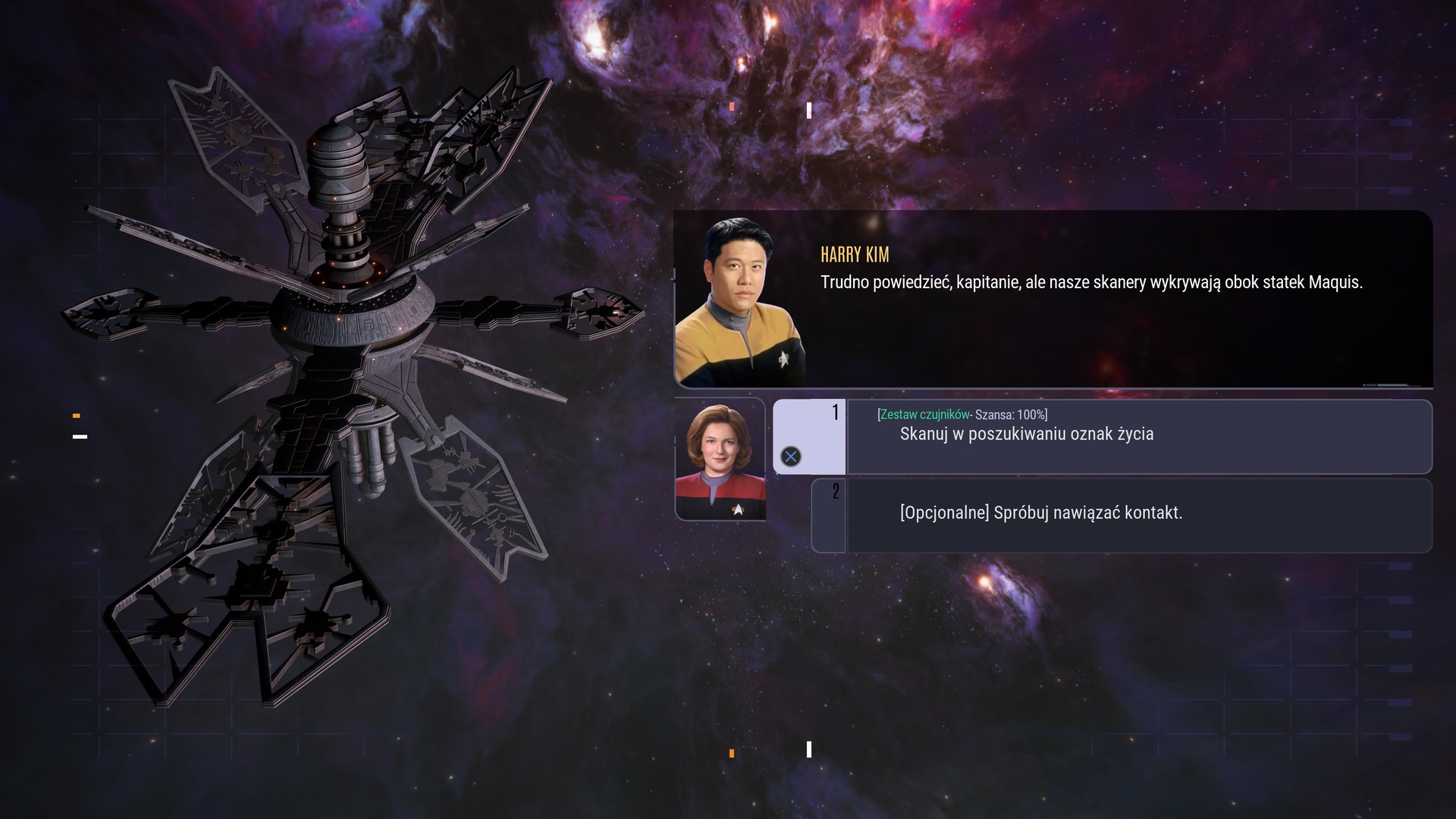 Jednak biorąc się za Star Trek Voyager: Across the Unknown, należy pamiętać, że strategia opowiada fabułę głównie poprzez bloki tekstu – no i przez dialogi, które również występują tu prawie wyłącznie w formie tekstowej (udostępniono polskie tłumaczenie). Na próżno tu szukać jakichś dłuższych cut-scenek, które pchałyby historię do przodu. Te, które są, pokazują głównie sekwencje podróży statku po przestrzeni kosmicznej i trwają po kilka sekund.