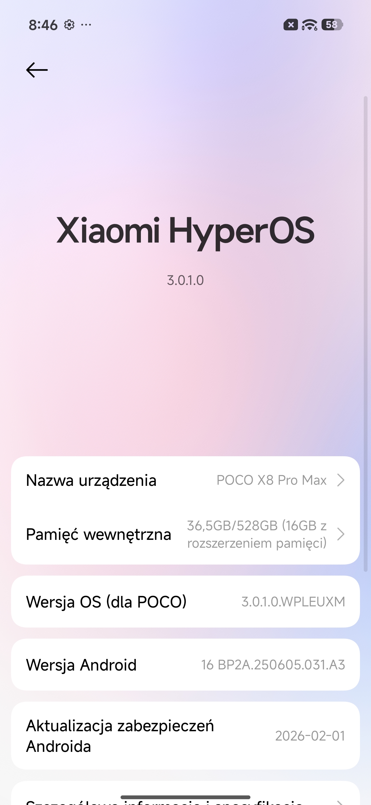 Specyfikacja techniczna POCO X8 Pro Max