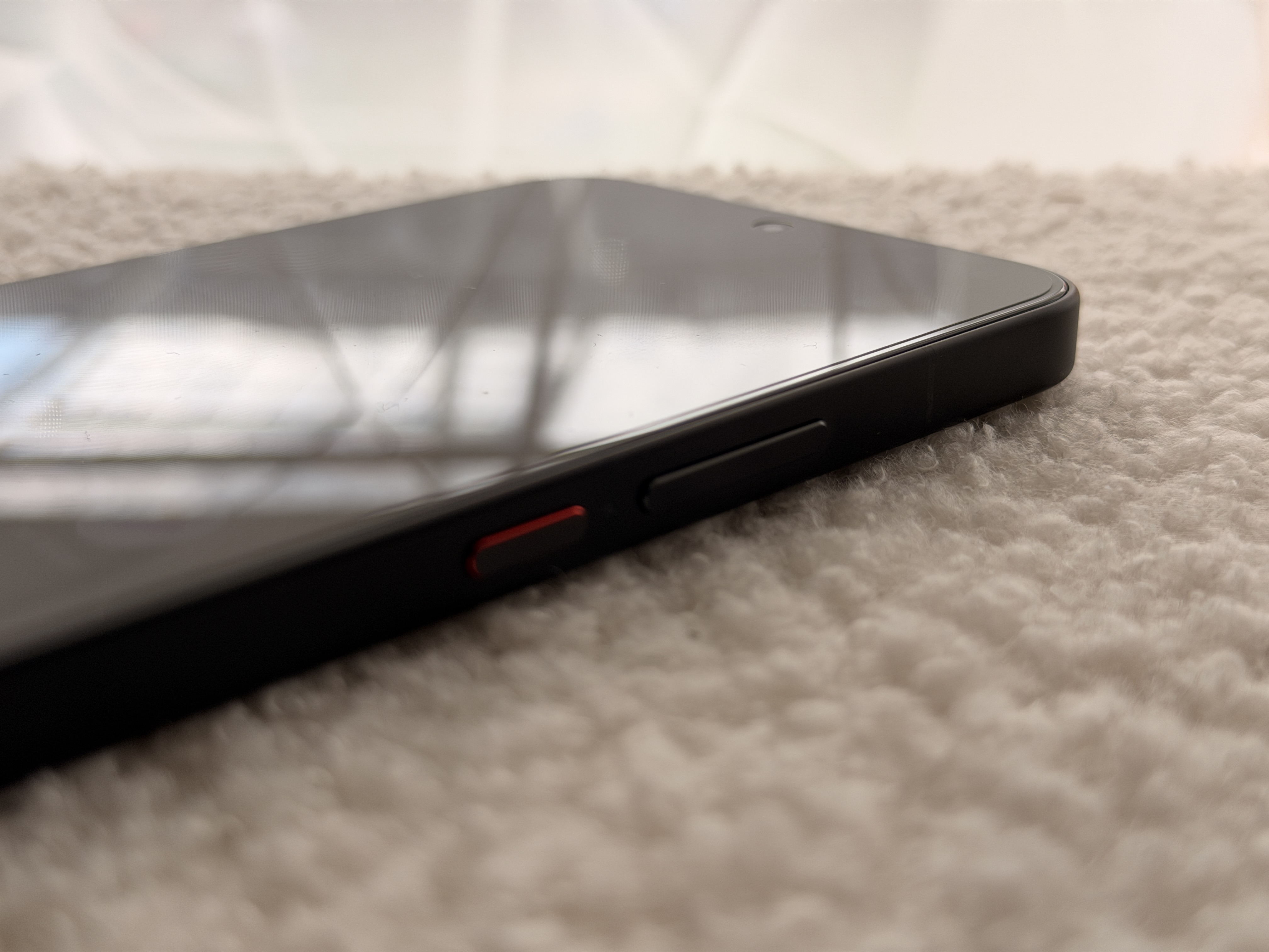 Rozmieszczenie elementów sterujących jest w pełni standardowe i ergonomiczne. Lewa krawędź pozostała wolna od przycisków, natomiast na prawej stronie osadzono regulację głośności oraz przycisk zasilania o twardym, precyzyjnym skoku. Na górze obudowy znajduje się dodatkowy mikrofon oraz grill symetrycznego głośnika górnego. Dolna część mieści główny głośnik, tackę na karty SIM, mikrofon oraz port USB-C. Front urządzenia cechuje się relatywnie wąskimi ramkami wokół wyświetlacza oraz dyskretnym otworem na kamerę selfie. Chociaż czarny kolor zdaje się nudny, to według mnie urządzenie sprawia wrażenie dużo droższego, niż faktycznie jest.