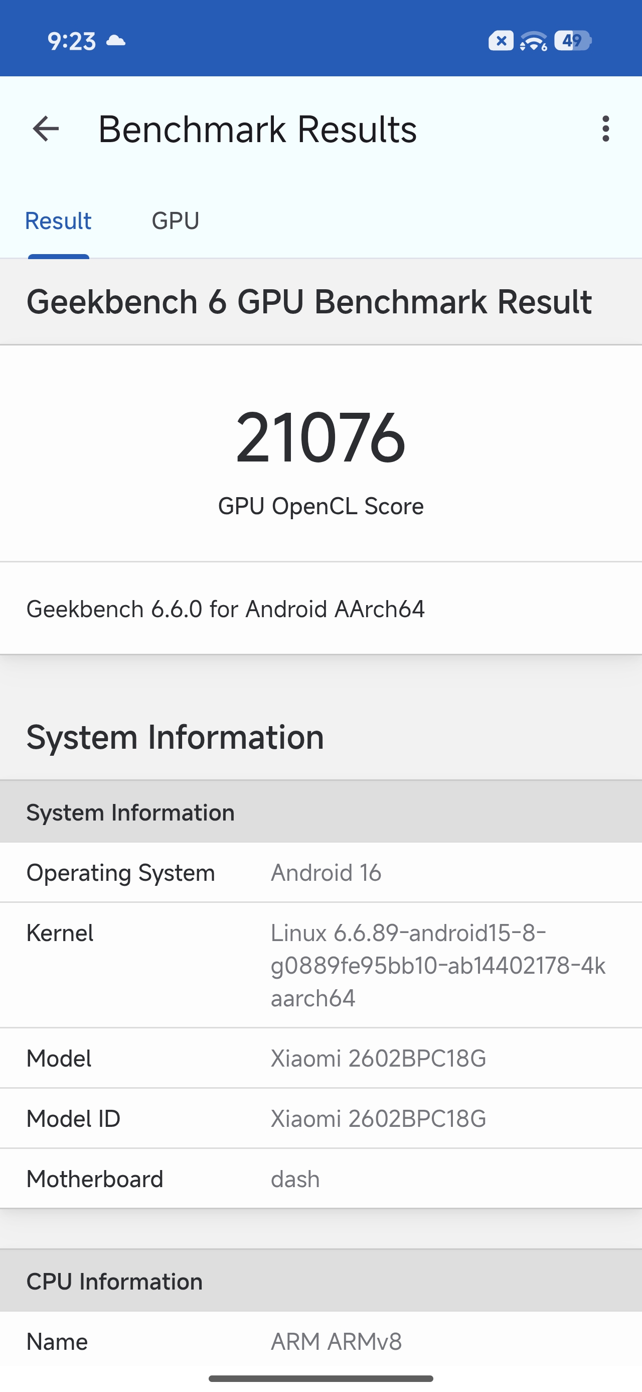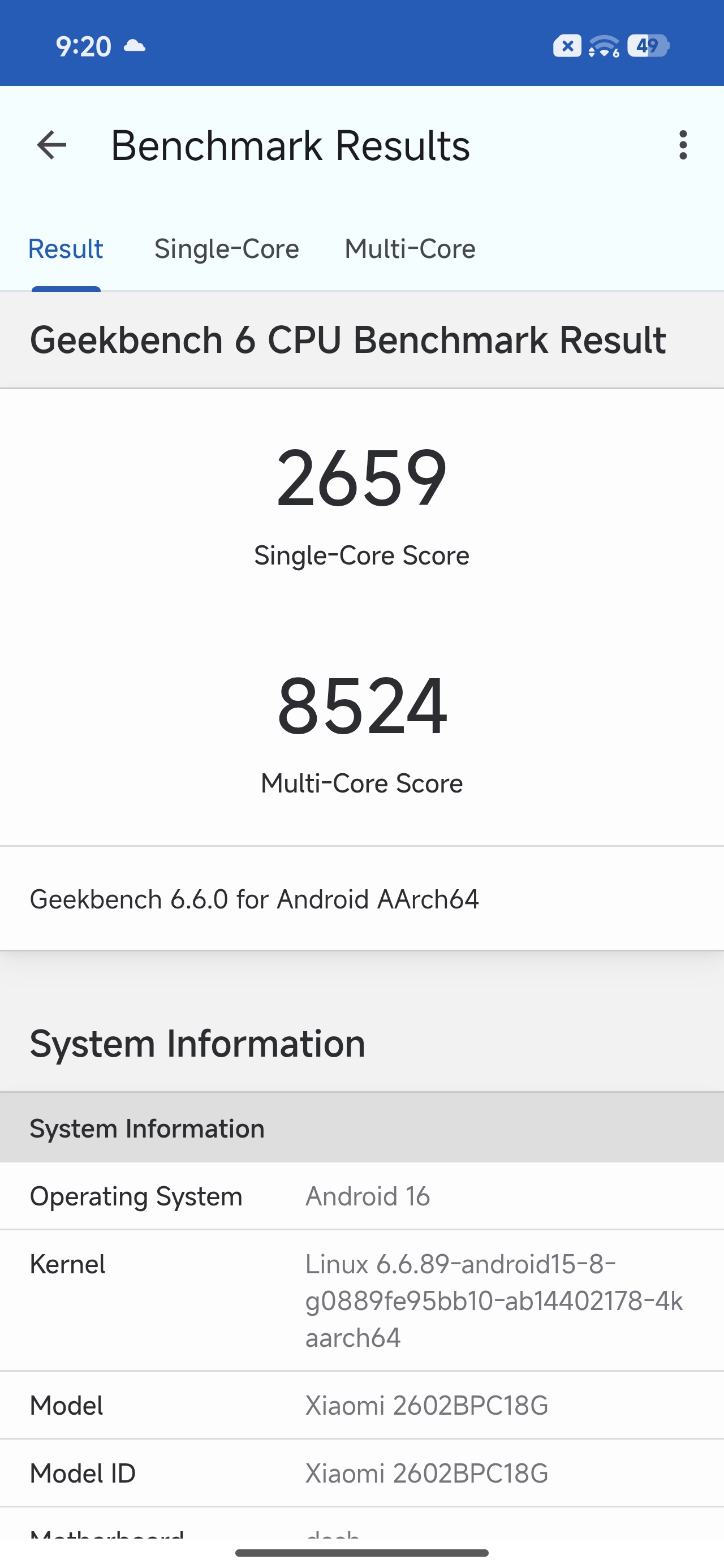 Wyniki w Geekbench 6 tylko potwierdzają tę dominację. Rezultat 2659 punktów dla jednego rdzenia oraz 8524 punkty w teście wielordzeniowym to parametry, których nie powstydziłyby się żaden telefon w tym segmencie. Sprawdziłem również wydajność graficzną w OpenCL, gdzie smartfon uzyskał 21076 punktów, co w połączeniu z szybką pamięcią masową (odczyt i zapis sekwencyjny na poziomie ponad 2200 MB/s) czyni z tego urządzenia potężną stację roboczą zamkniętą w obudowie smartfona. Co ciekawe, mimo że testowany model widnieje w systemie pod oznaczeniem kodowym Xiaomi 2602BPC18G, jego optymalizacja pod Androida 16 wydaje się być na bardzo wysokim poziomie już na starcie.