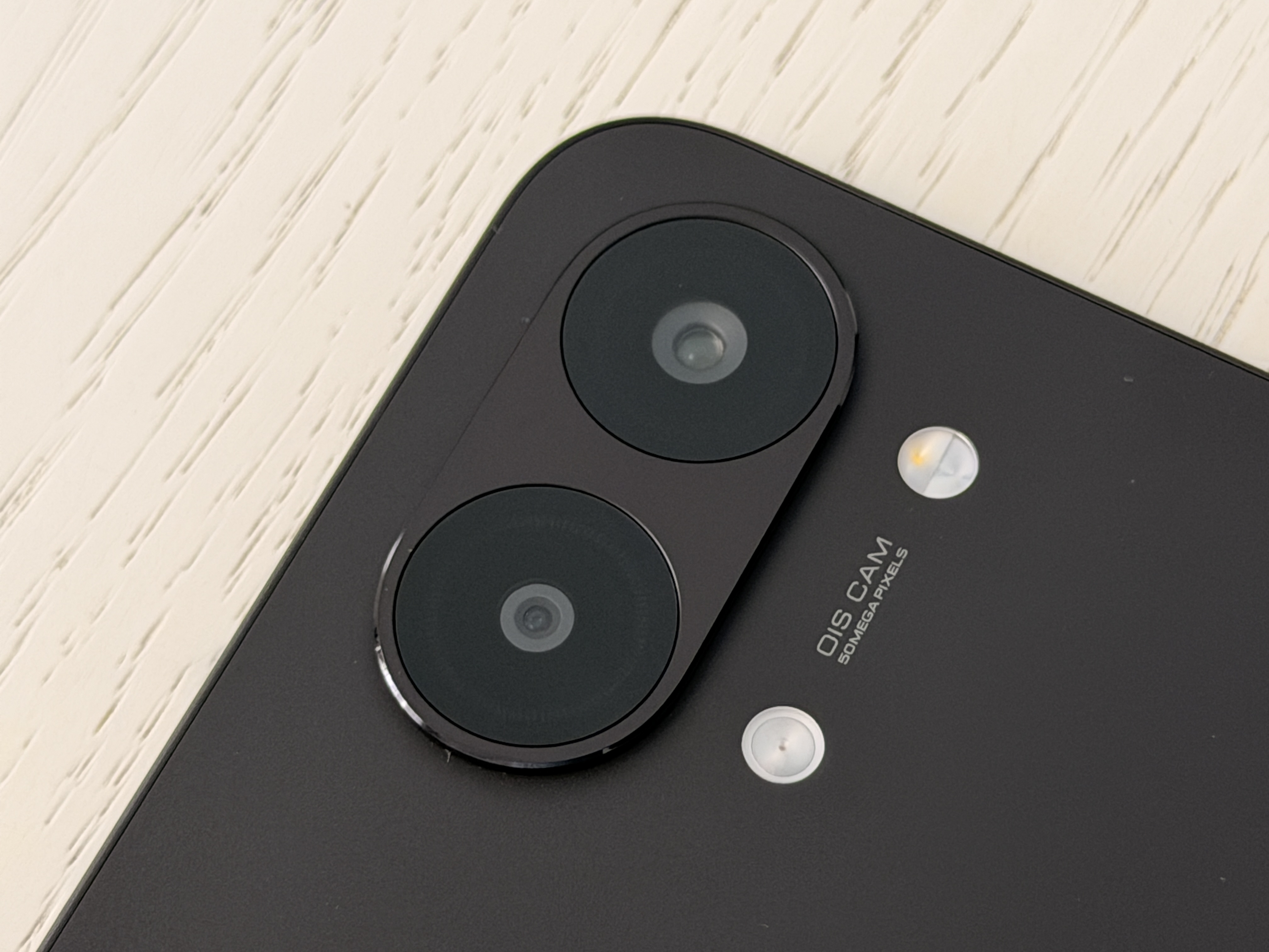 Moduł aparatów to zwarta, lekko uniesiona wyspa z estetycznie fazowanymi krawędziami. Wokół obiektywów zaimplementowano dwa pierścienie Dynamic RGB, składające się z czterech konfigurowalnych segmentów każdy. Diody pełnią funkcję użytkową: wizualizują powiadomienia, połączenia przychodzące, pracę samowyzwalacza oraz poziom naładowania akumulatora za pomocą kolorów (czerwony poniżej 20%, żółty do 50%, biały powyżej 50% i zielony przy 100%). System współpracuje również z popularnymi aplikacjami muzycznymi (jak Spotify) oraz wybranymi grami, reagując na dynamikę dźwięku lub zdarzenia w rozgrywce.