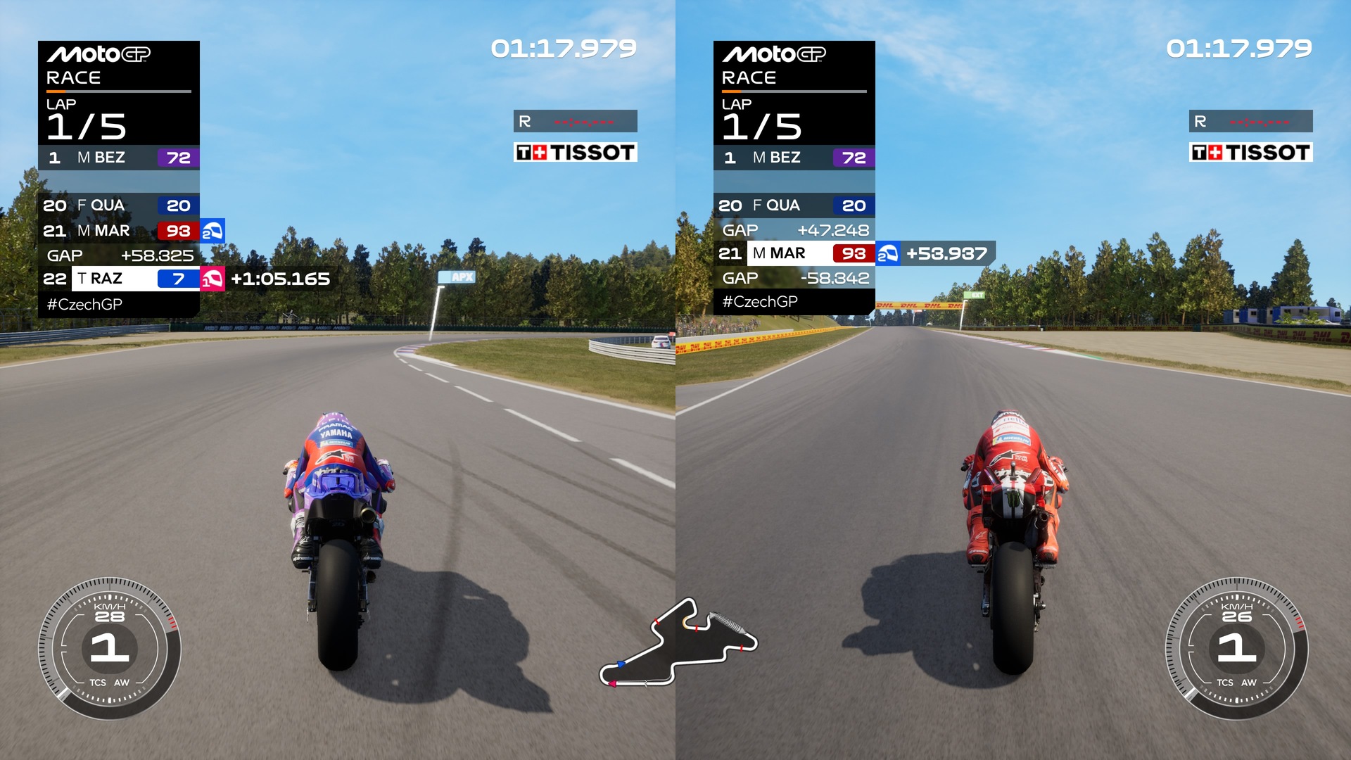 Nie wiem, czy to kwestia środka ciężkości czy czegokolwiek innego, ale wrażenia z jazdy nie były najlepsze. Dlatego wybierając wyścigi z klasami Minibike i Motard, przestawiałam się na tryb Arcade. Jeśli chodzi natomiast o resztę trybów, mamy do dyspozycji oczywiście także multi – zarówno tradycyjny, jak i split-screen. W tym ostatnim możemy ścigać się ze znajomym lokalnie, jeśli oczywiście dysponujemy dodatkowym padem. Oczywiście pozostali zawodnicy w takim wyścigu również są obecni i steruje nimi AI. Równocześnie szkoda, że od paru odsłon twórcy nie decydują się na powrót uwielbianego trybu historycznego.